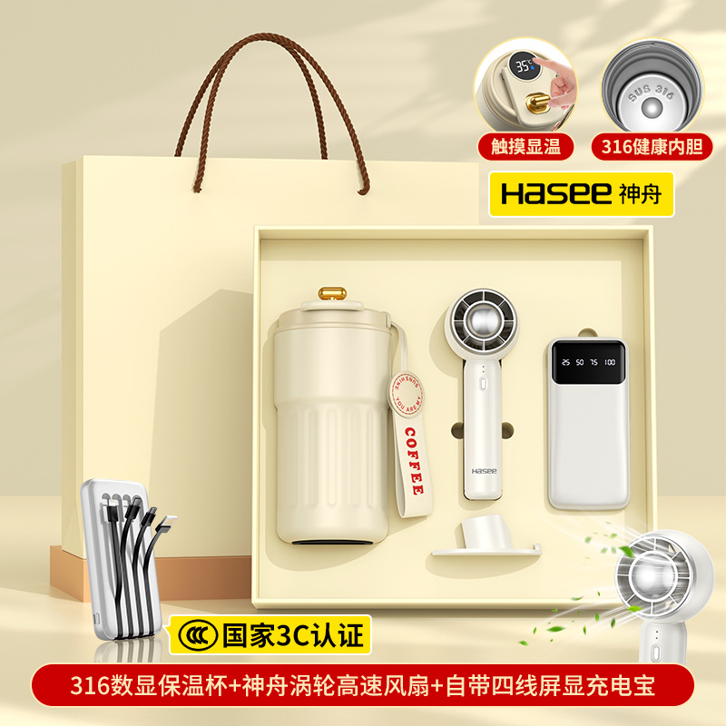 white/coffee cup + hasee t20 fan +4 lines power bank/m 1-beige gift box