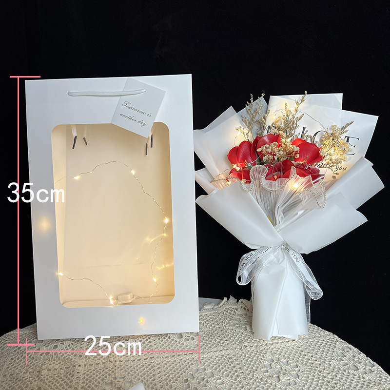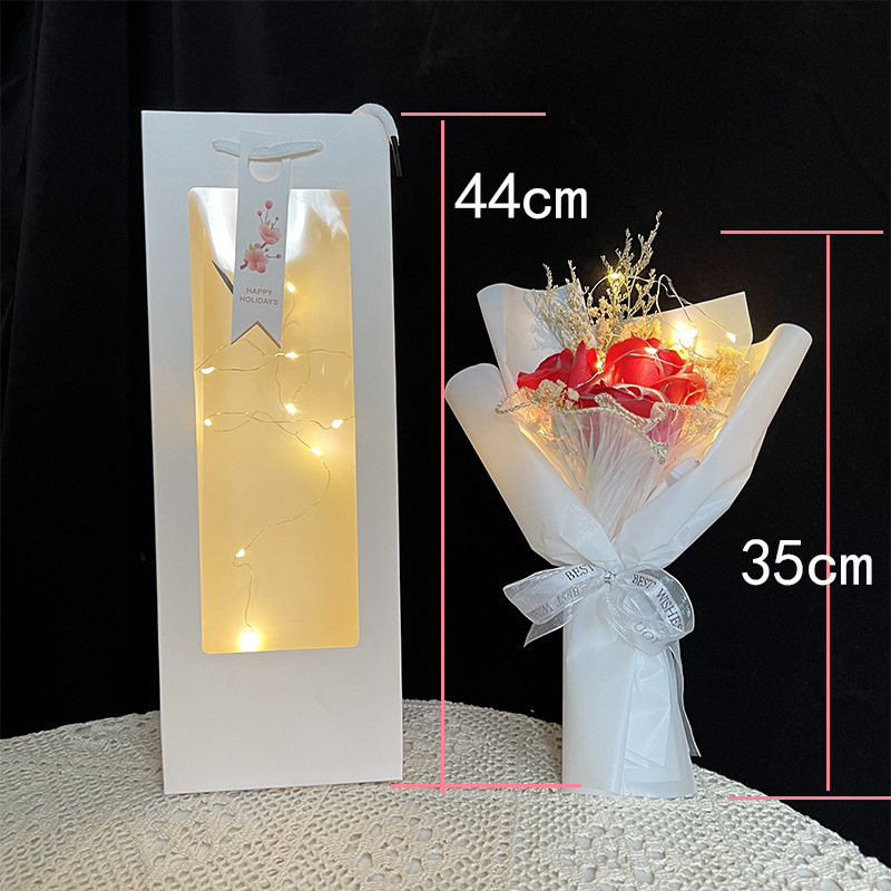 3 silver red roses + gift bag + lights