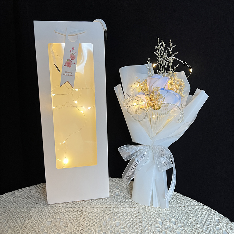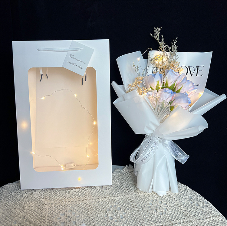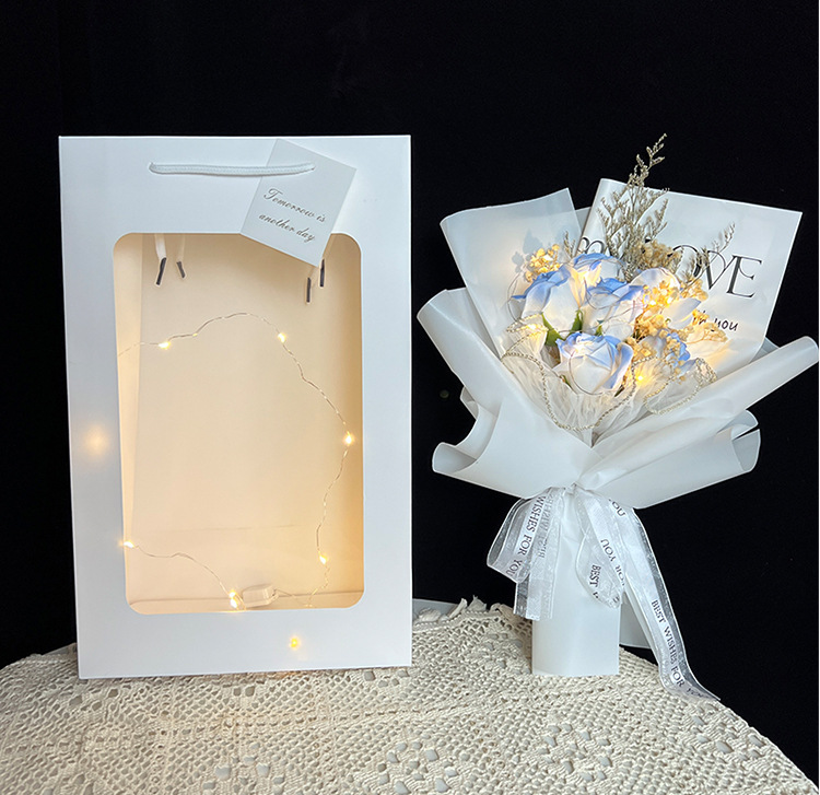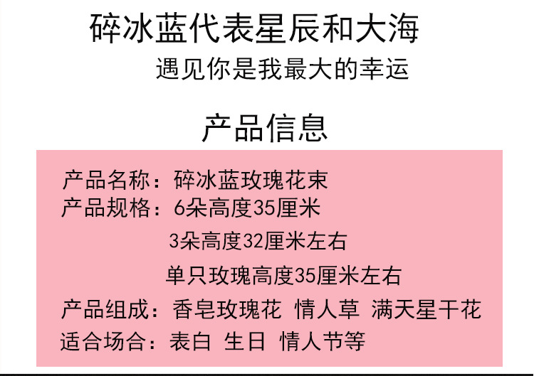 6 ice crushing blue rose + gift bag + lights