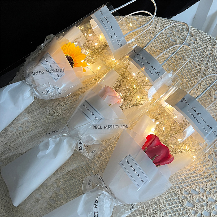 6 ice crushing pink rose + gift bag + lights