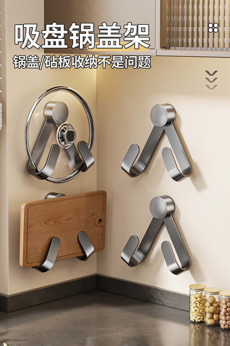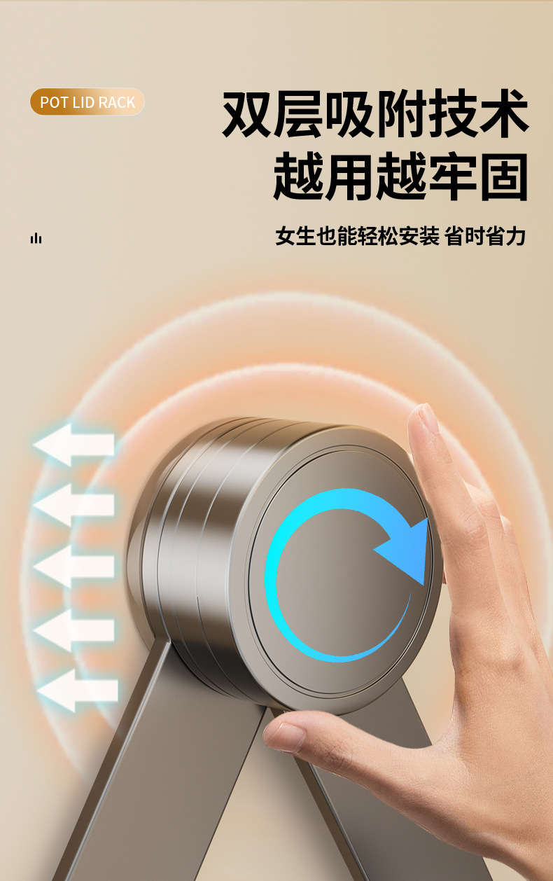 [gun gray] suction cup rotating pot cover rack