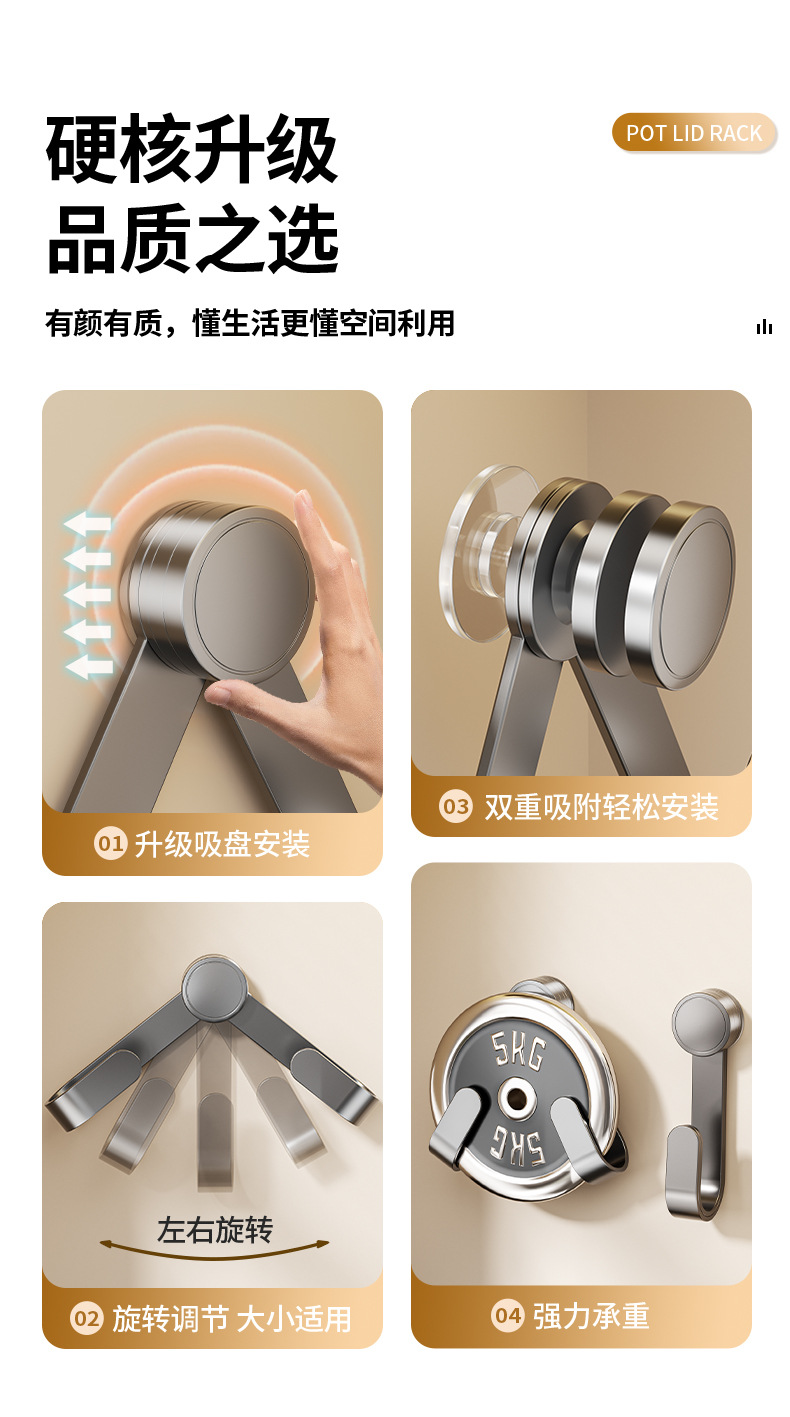 [cream white] suction cup rotating pot cover rack
