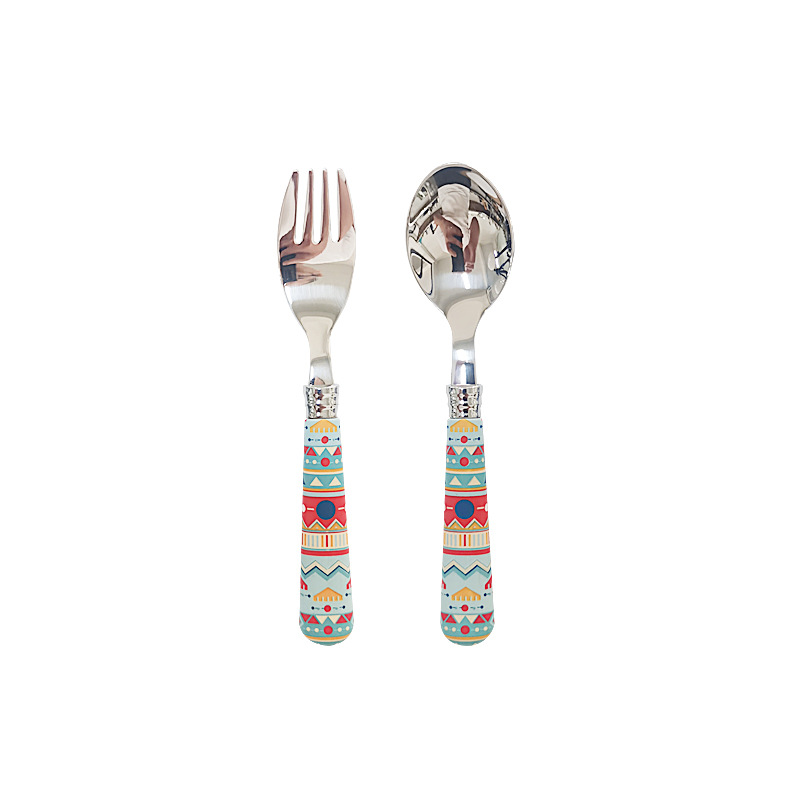 ethnic blue background spoon fork 2-piece set