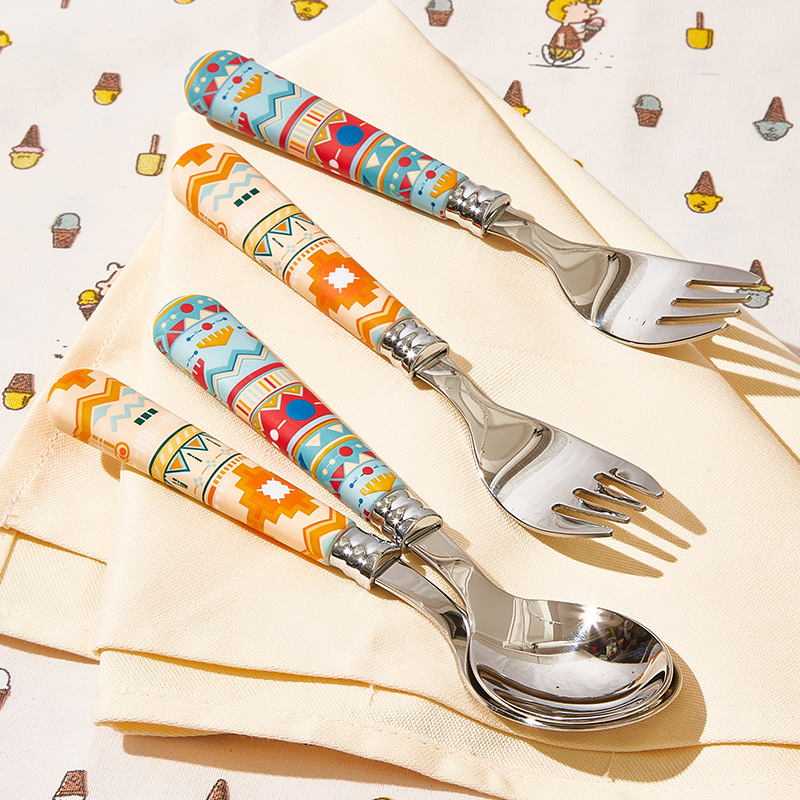 ethnic yellow bottom spoon fork 2-piece set