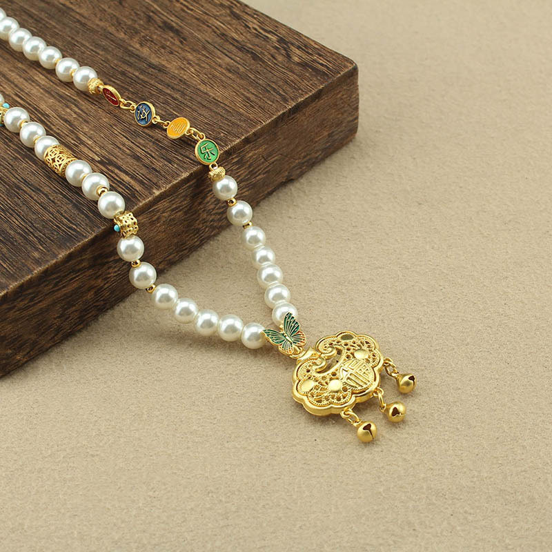 1014-1# ping an joy lock imitation pearl necklace