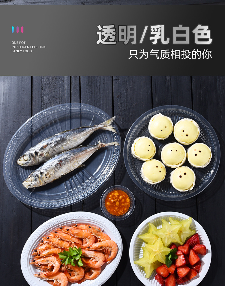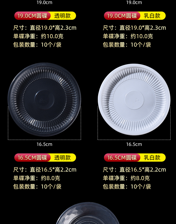 10 transparent 16.5cm round plates [about 6.5 inches]