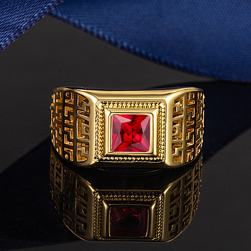 authentic vietnam placer gold ring for men and women open mouth trendy men's ring simulation ancient gold plated wedding high sense