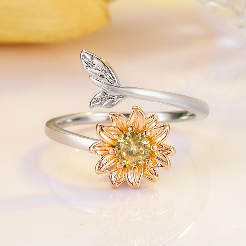 european and american fashion silver ornaments ring daisy ring female new fashion small fresh daisy ring graceful personality