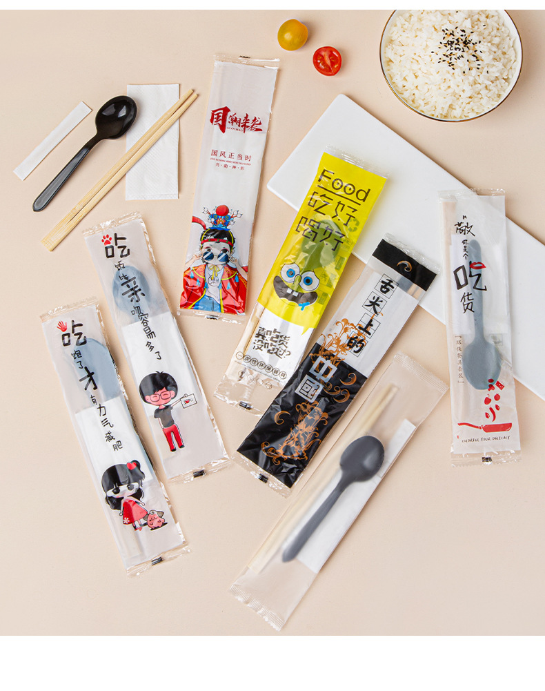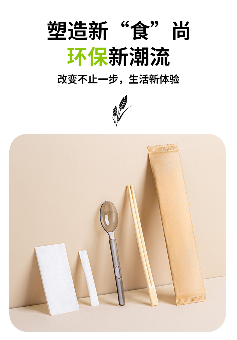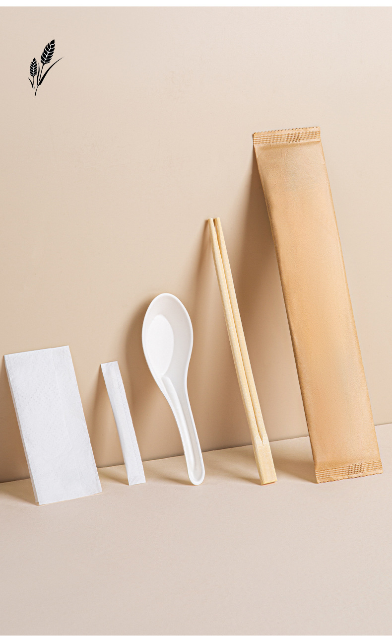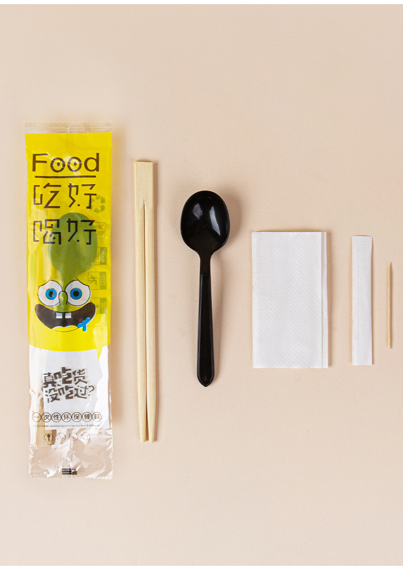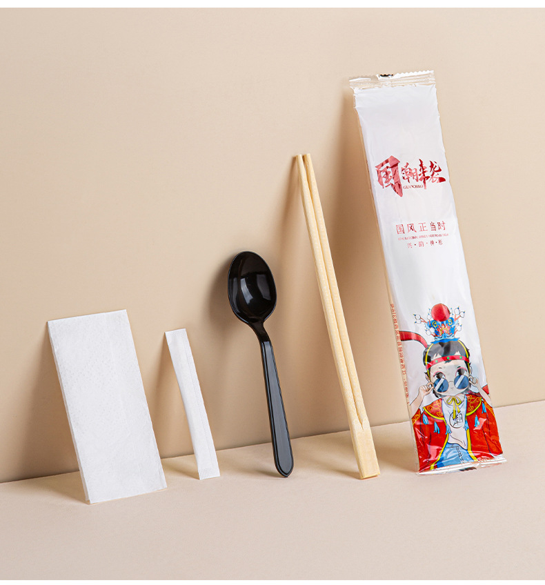 white pulp spoon + native twin chopsticks four-piece set