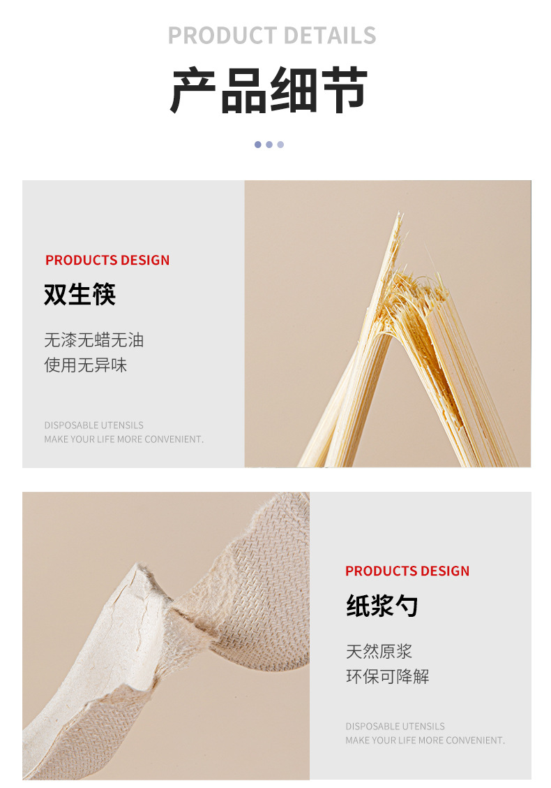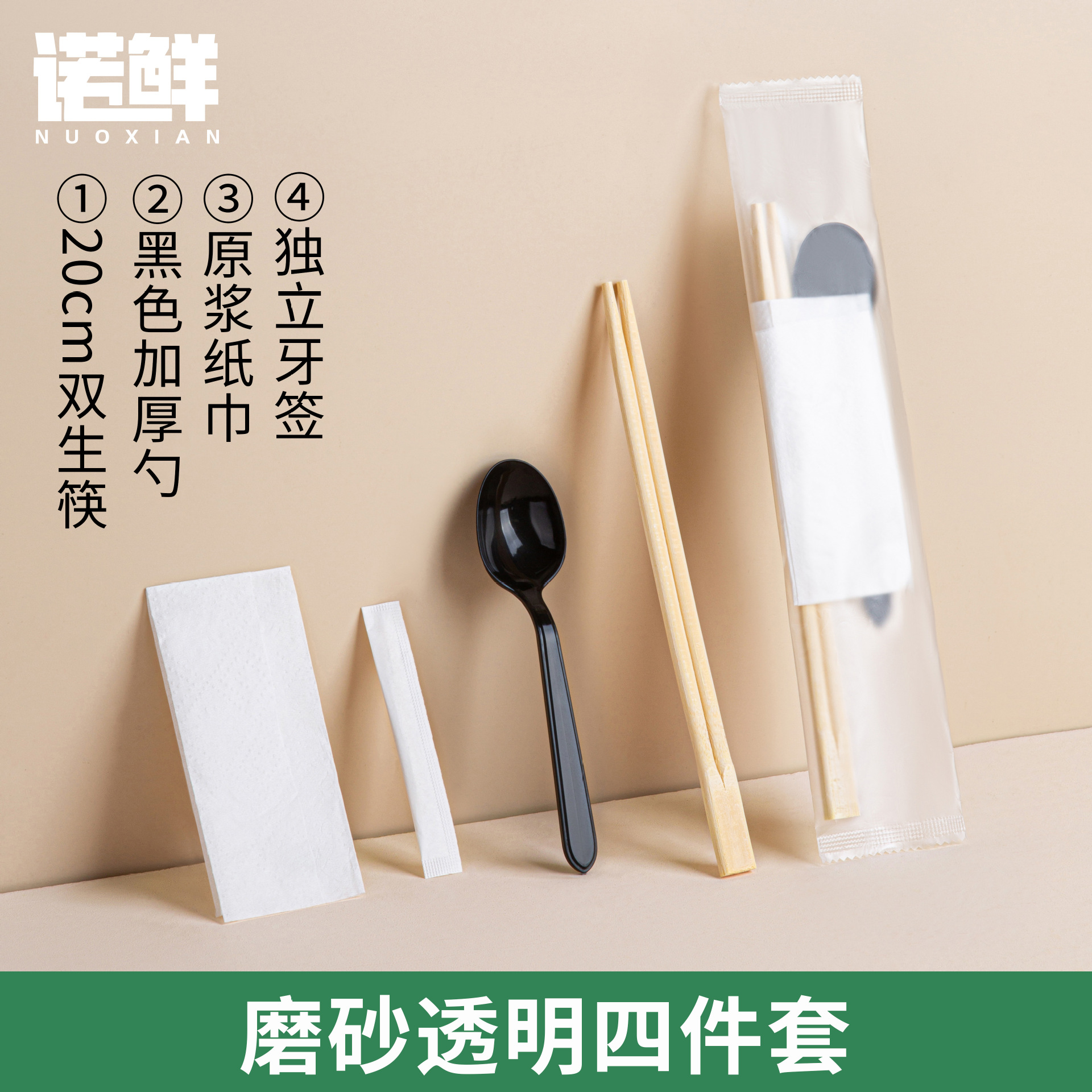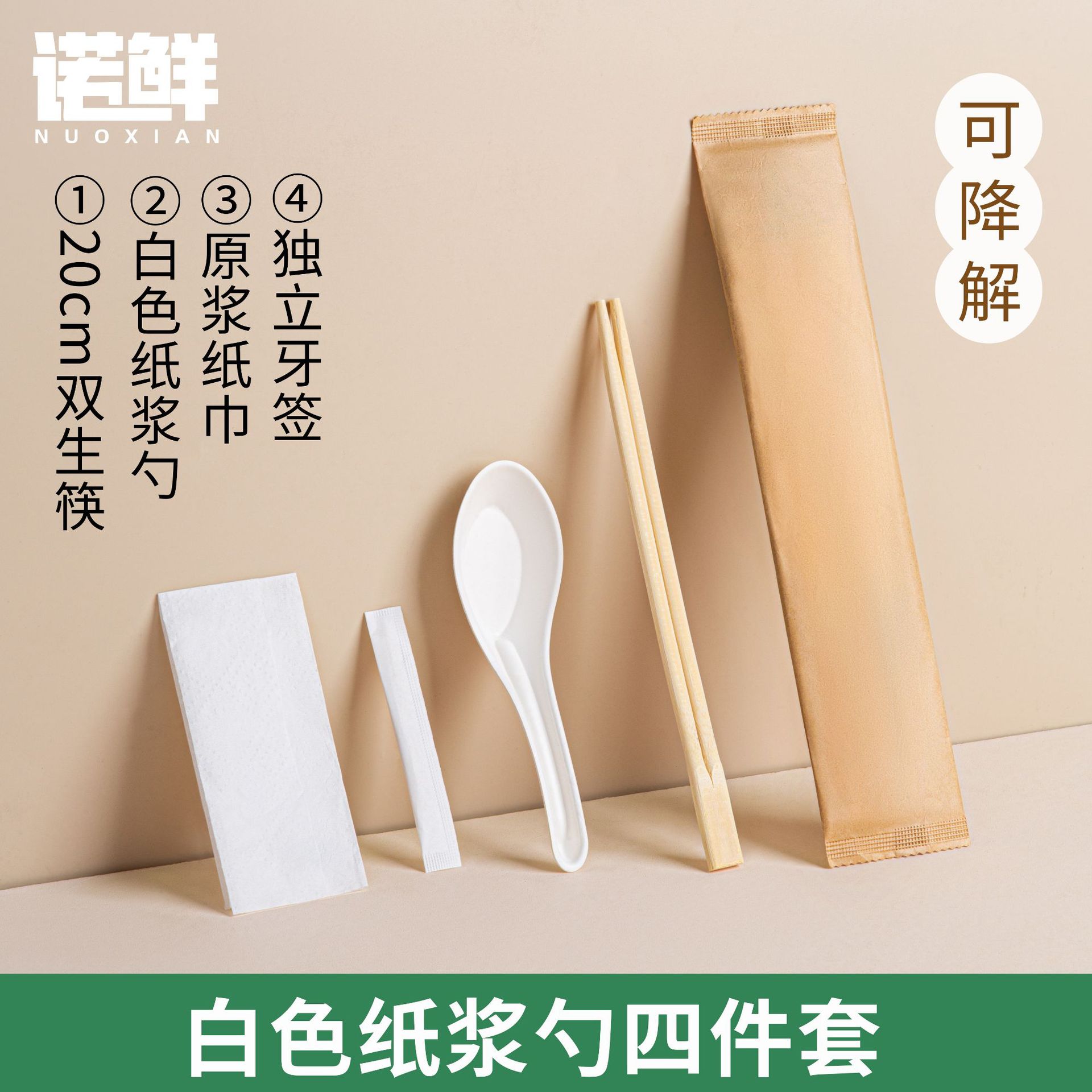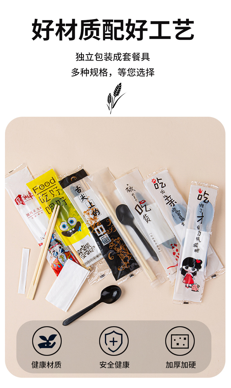white pulp spoon + native twin chopsticks four-piece set