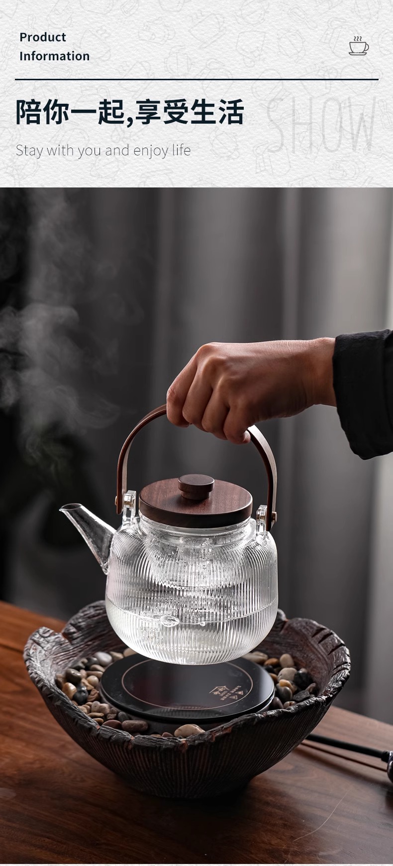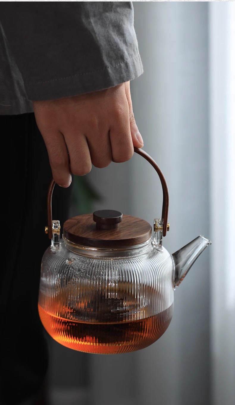 striped loop-handled teapot