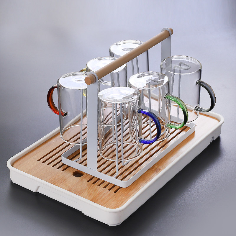 minimalist cup 450ml six-color pack + wooden bar cup holder +36-24 primary color tea tray
