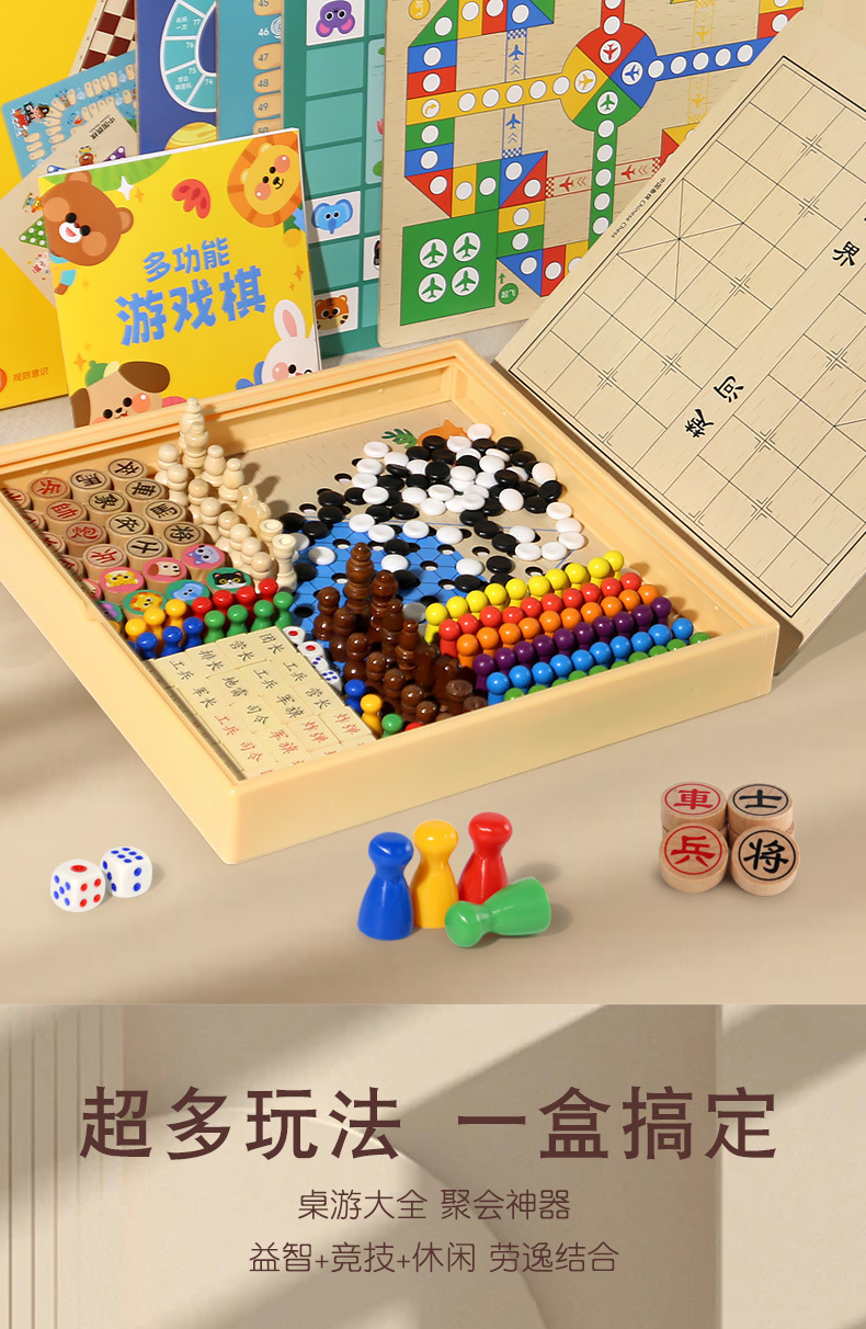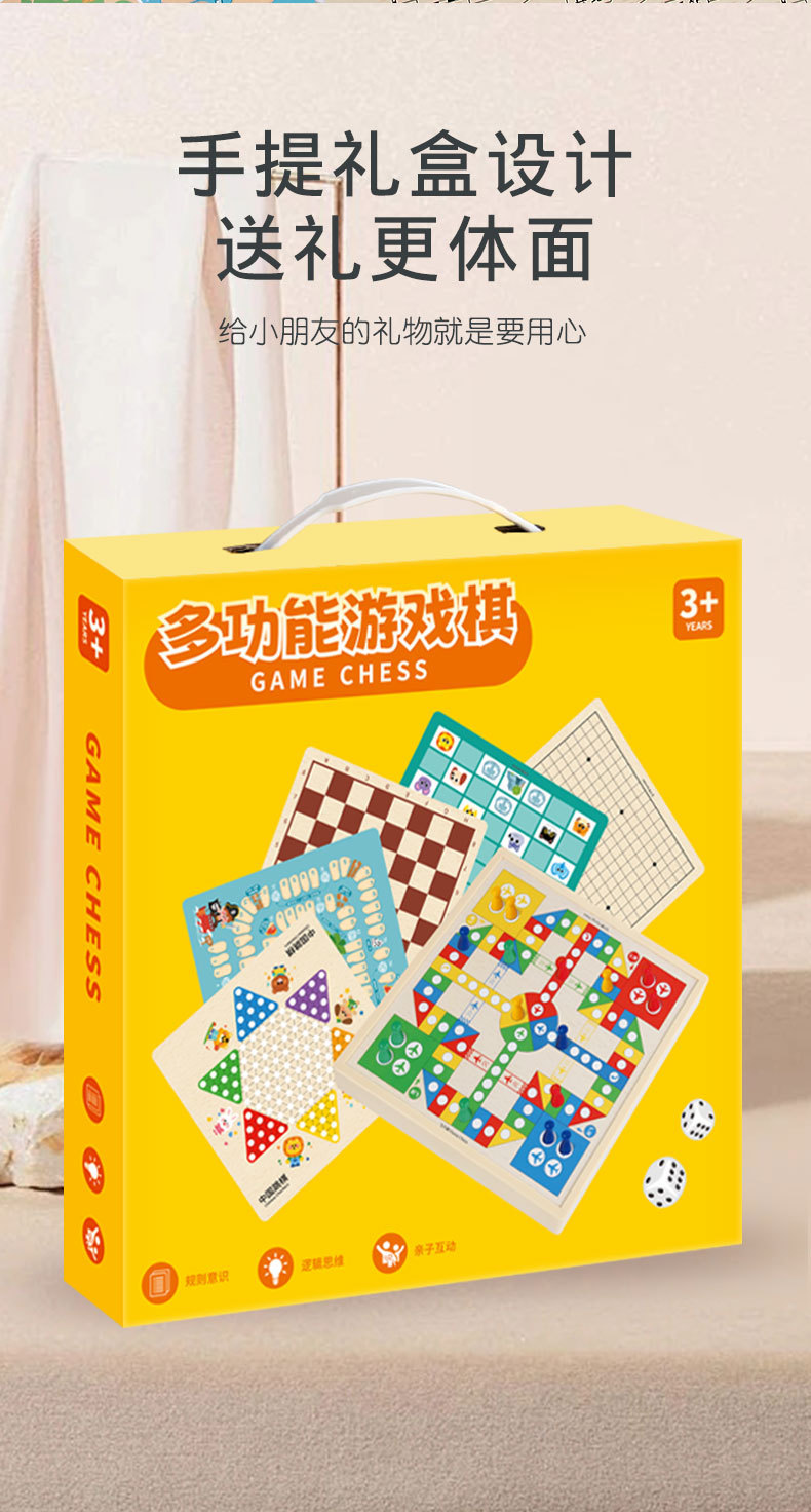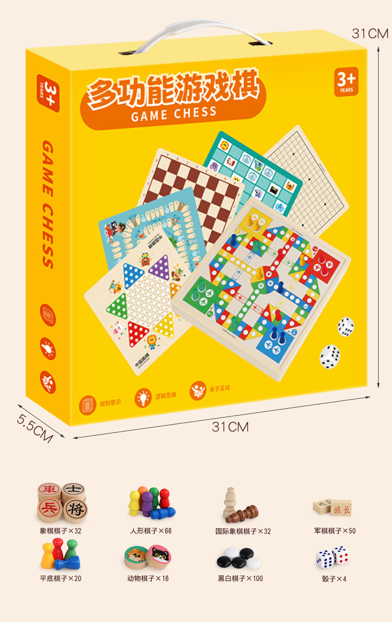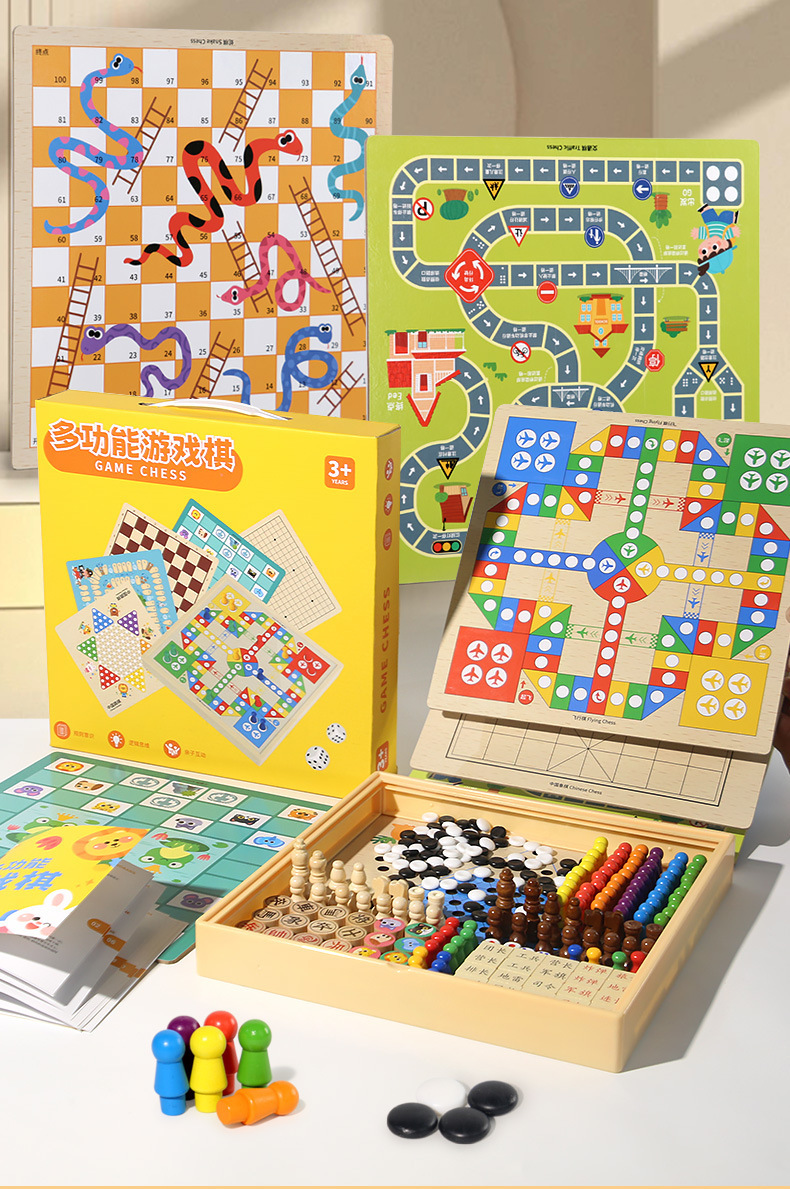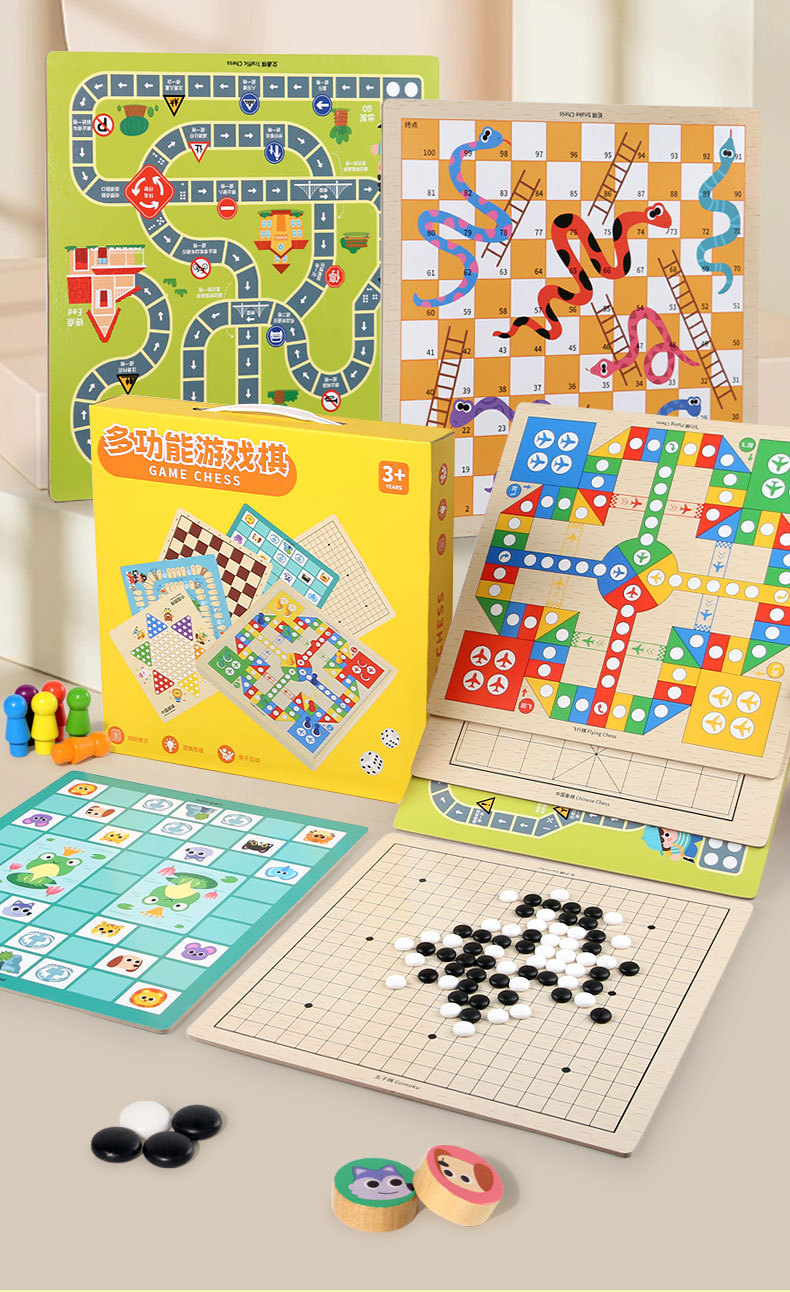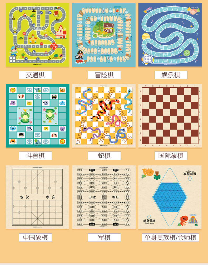 [package 6] 30 * 30cm nine-in-one checkers + five-child + flight + military chess + chess + adventure + snakes & ladders + traffic + entertainment