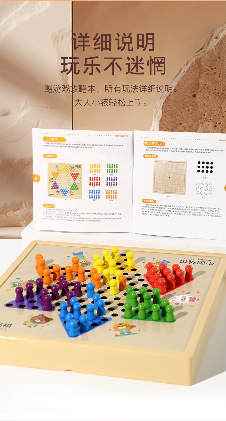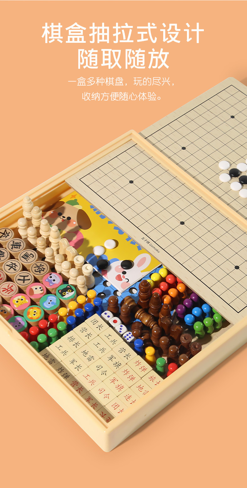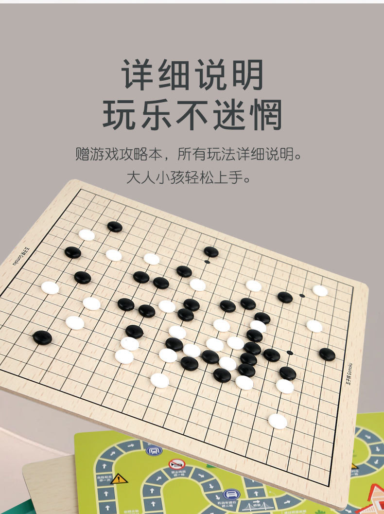 [package 4] 30 * 30cm five-in-one checkers + five-in-a-row + aeroplane chess + military chess + chess (with instructions)
