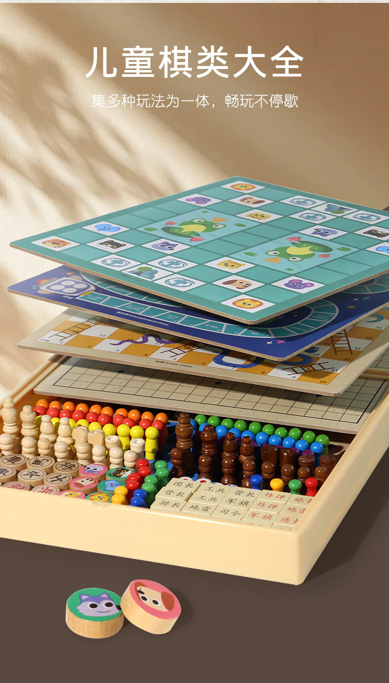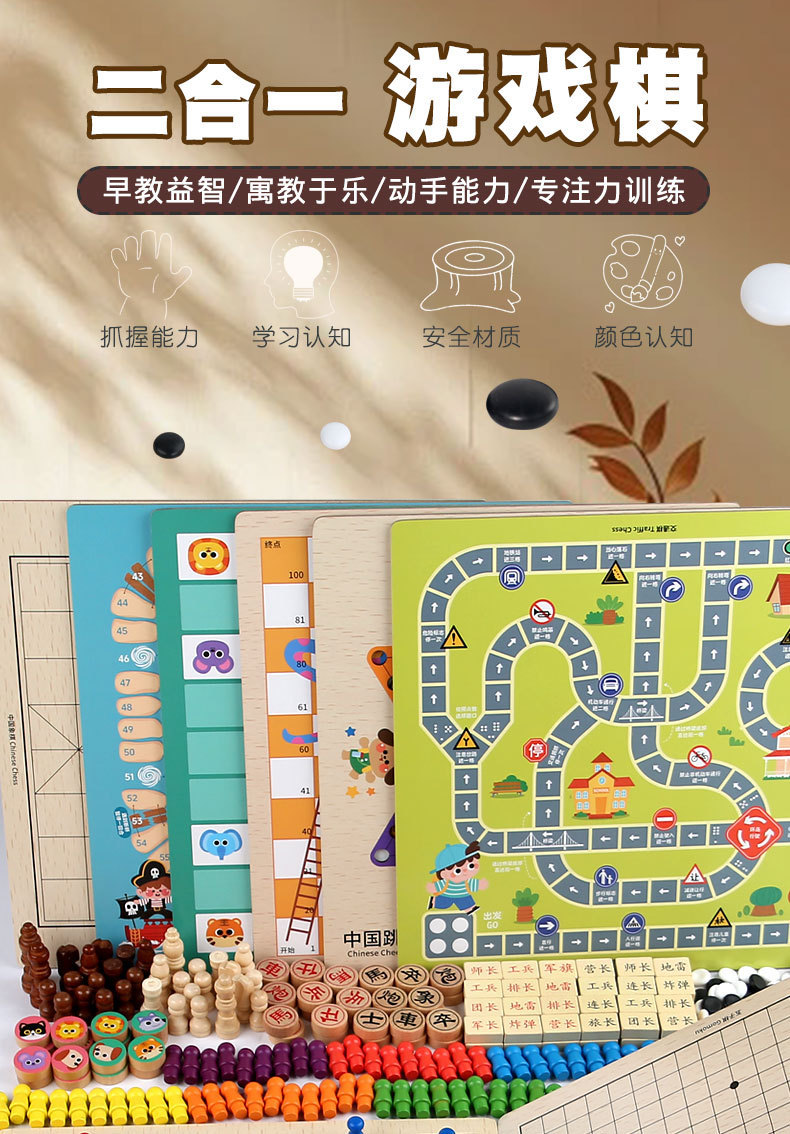 [package 5] 30 * 30cm nine-in-one checkers + five-in-a-row + aeroplane chess + military chess + chess + adventure chess + snakes & ladders + bucket