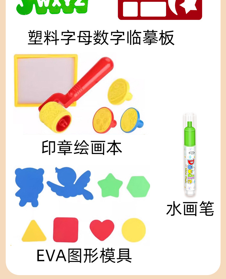 44cmx30cm letters [5 pens +2 eva +4 pieces drawing plate + picture album + roller seal 5-piece set]]