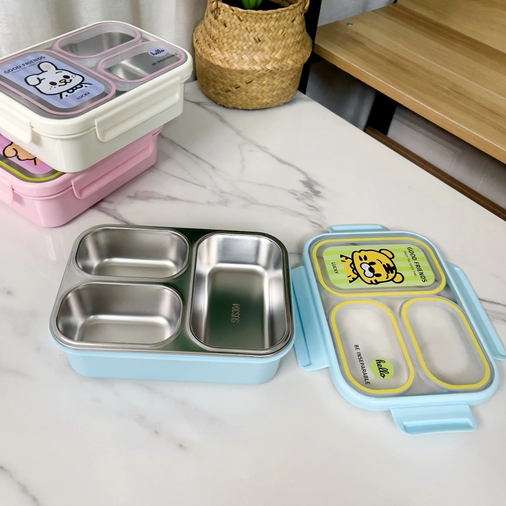 food grade 304 stainless steel insulated lunch box student children compartment lunch box portable lunch plate lunch box for work