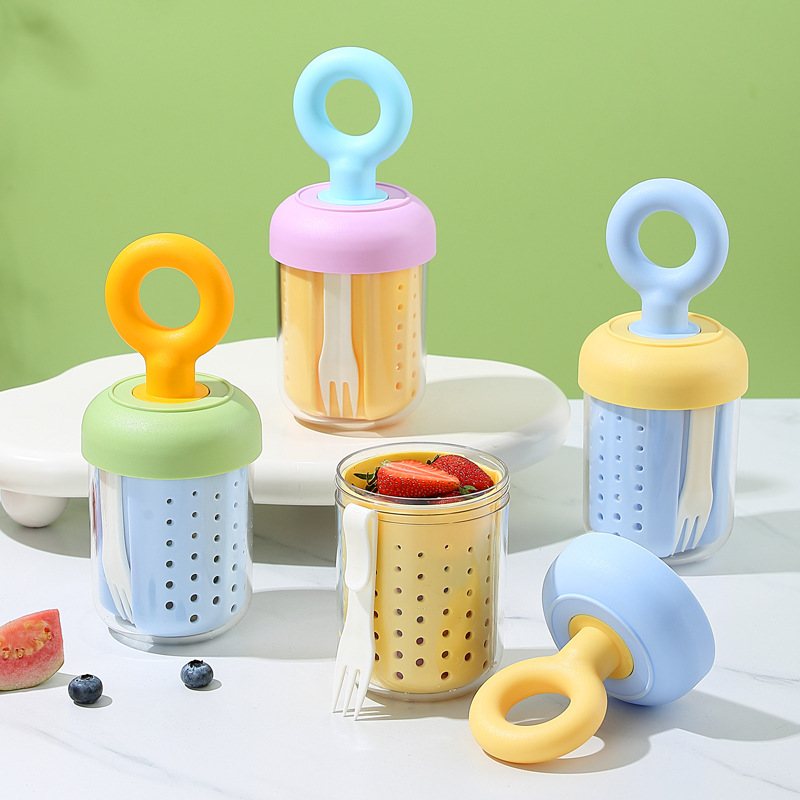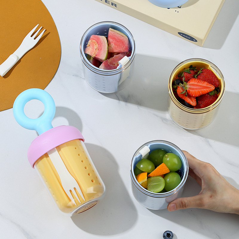 fork salad dopamine cup outdoor yogurt sealed leak-proof fruit cup with picnic drain double-layer cup portable