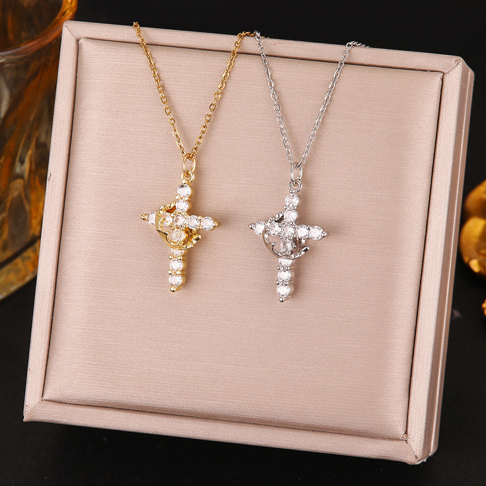 xx0006# rotatable crown cross necklace-gold