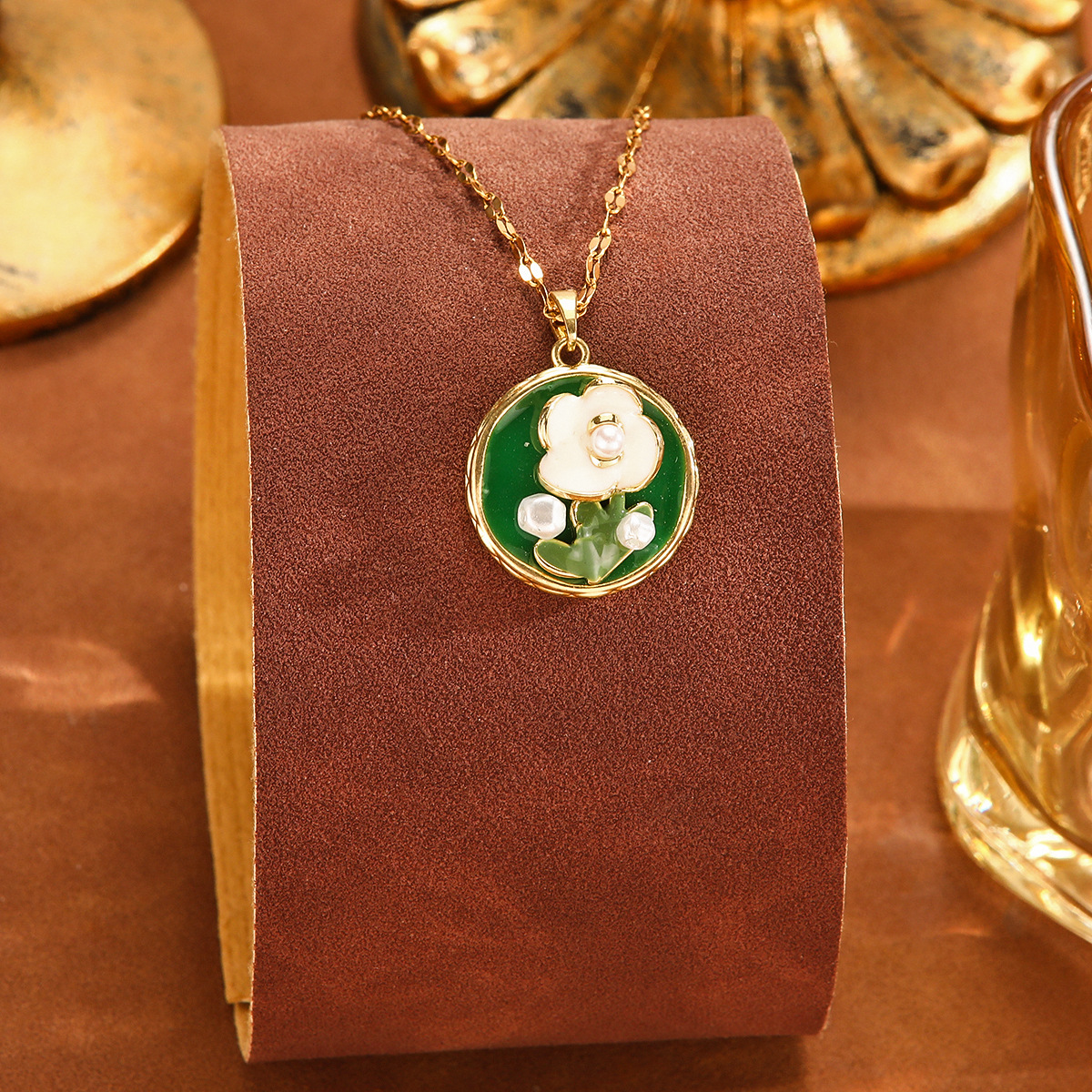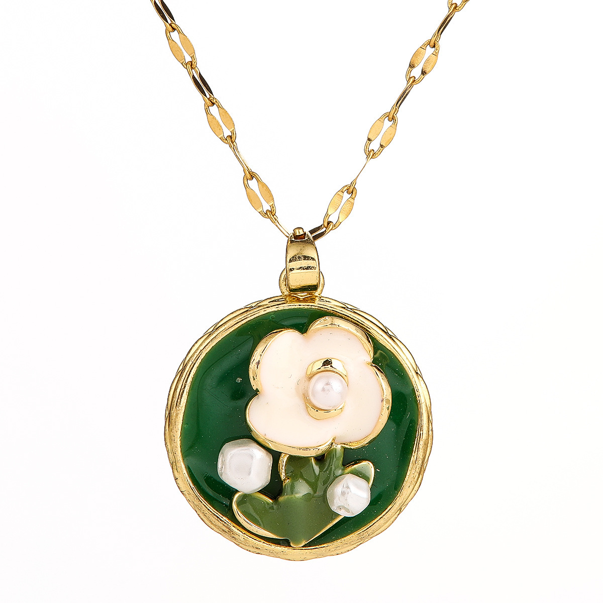 xx0133# green round oil painting necklace