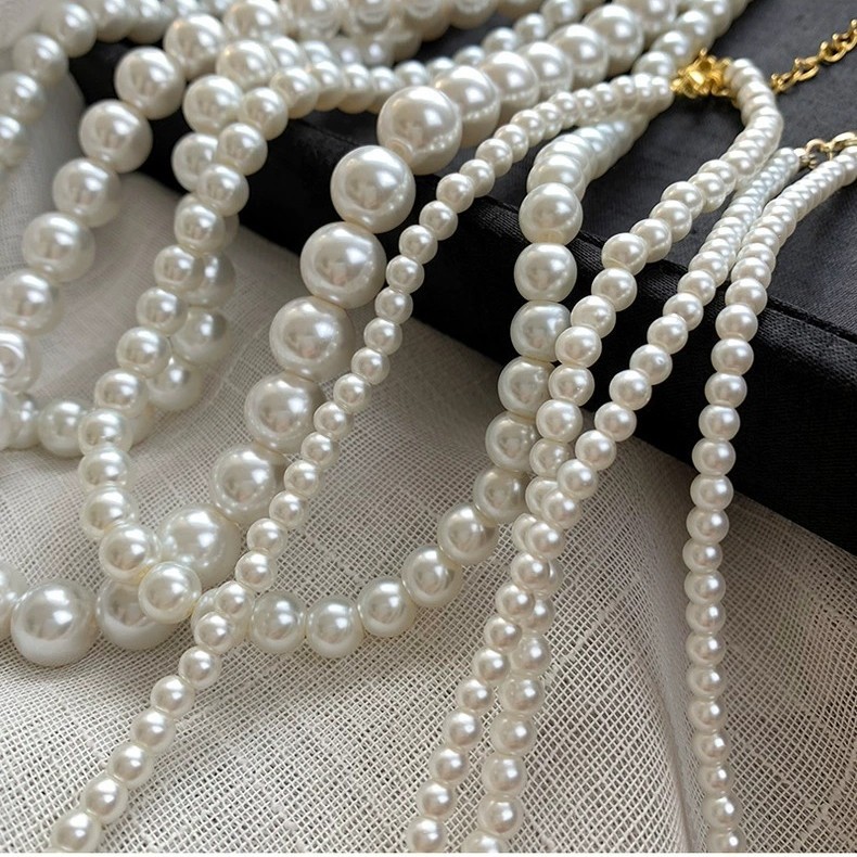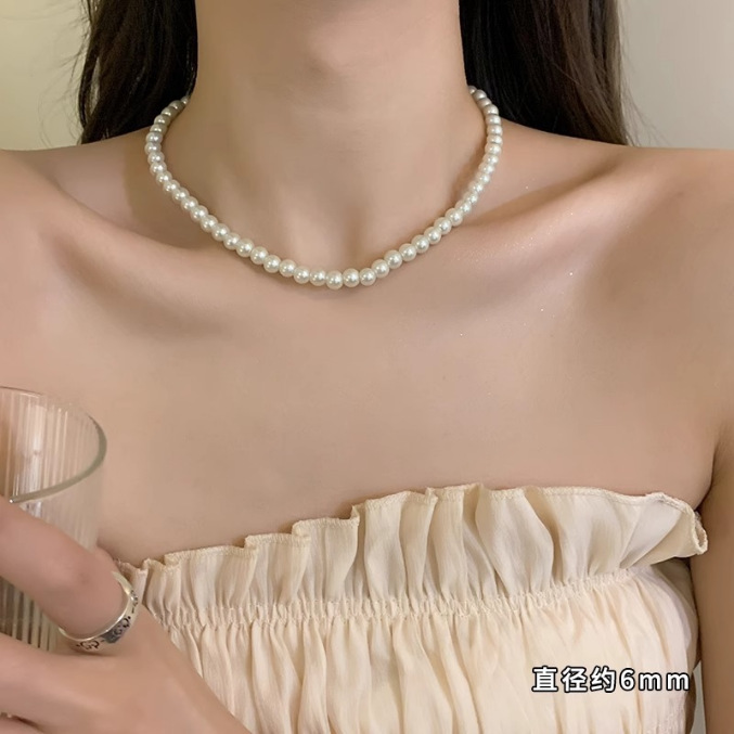 xx2045-3#6mm white glass pearl necklace