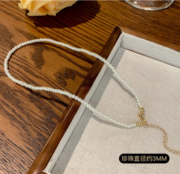 xx2045# 3mm white glass pearl necklace