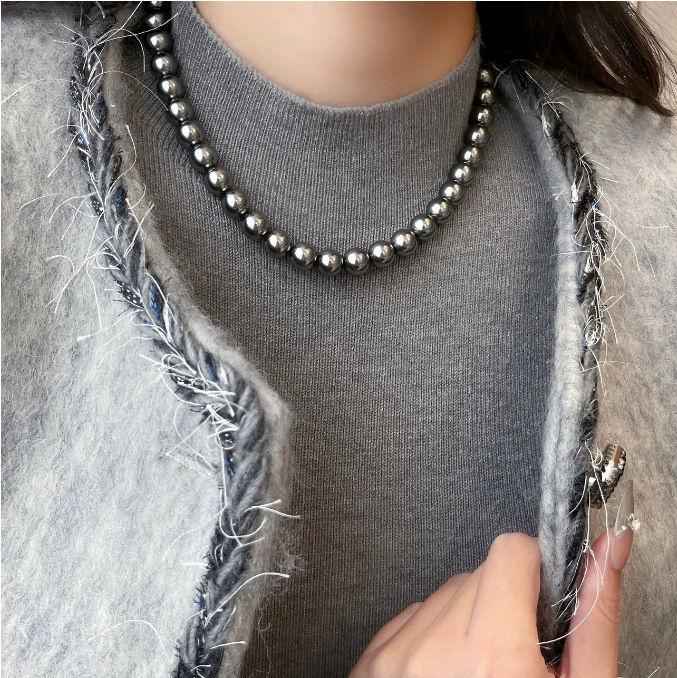 xx2043-2#5mm gray glass pearl necklace (silver lobster buckle)