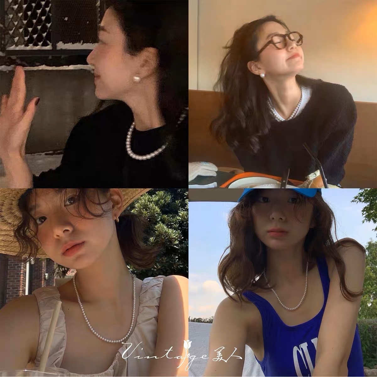 xx2045-1#4mm white glass pearl necklace