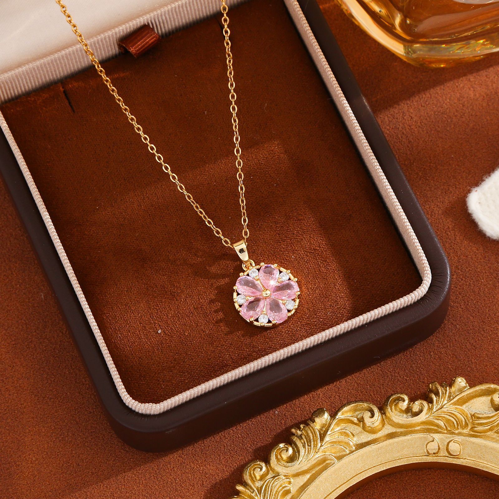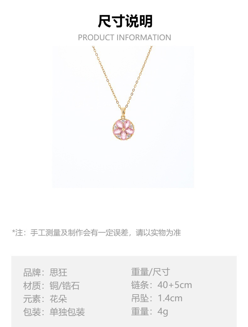 xx0114# pink zirconium peach blossom necklace