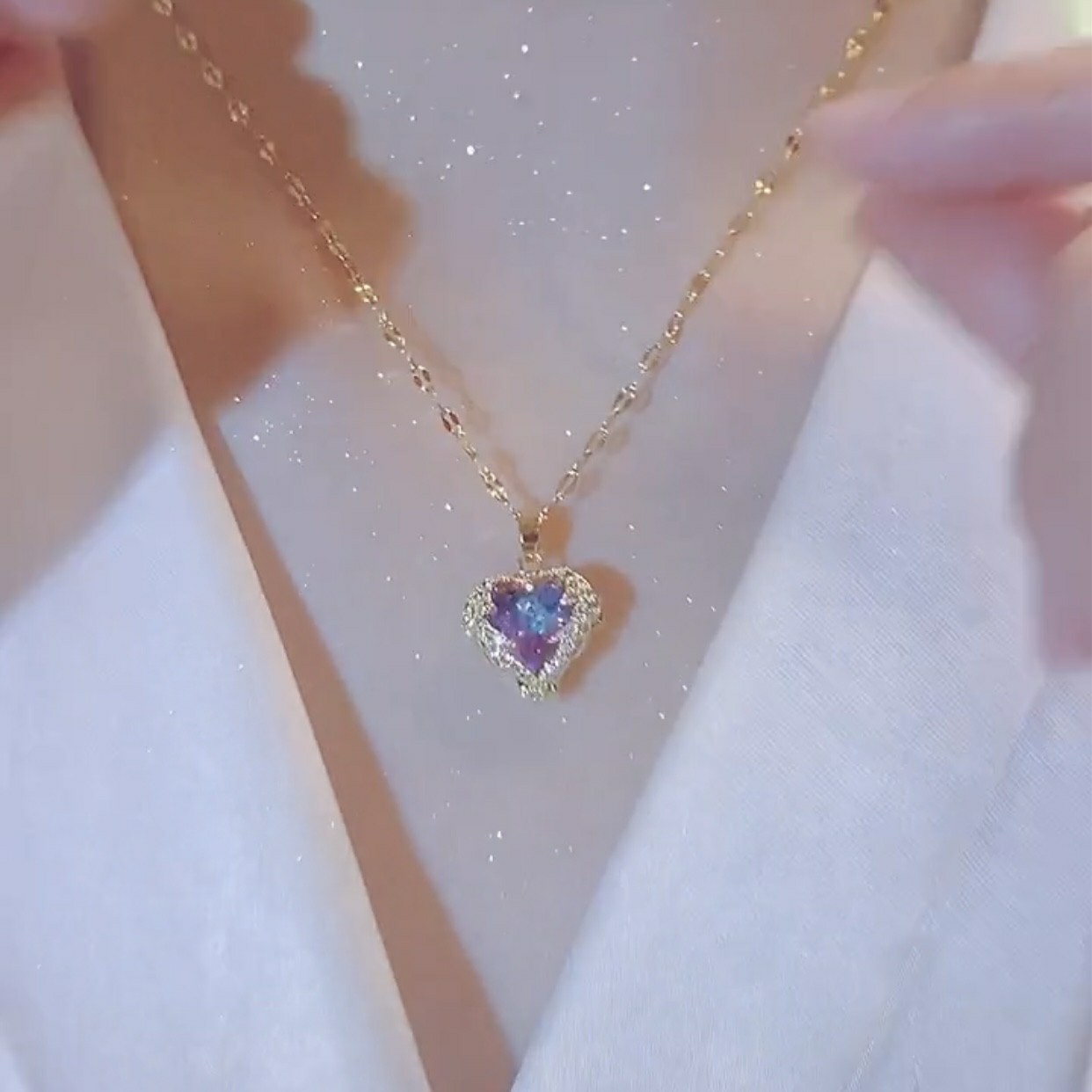 xl1977-1 pink heart of the ocean gold cross chain