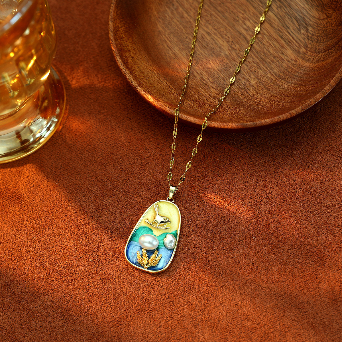 xx0161# yellow double pearl bird necklace