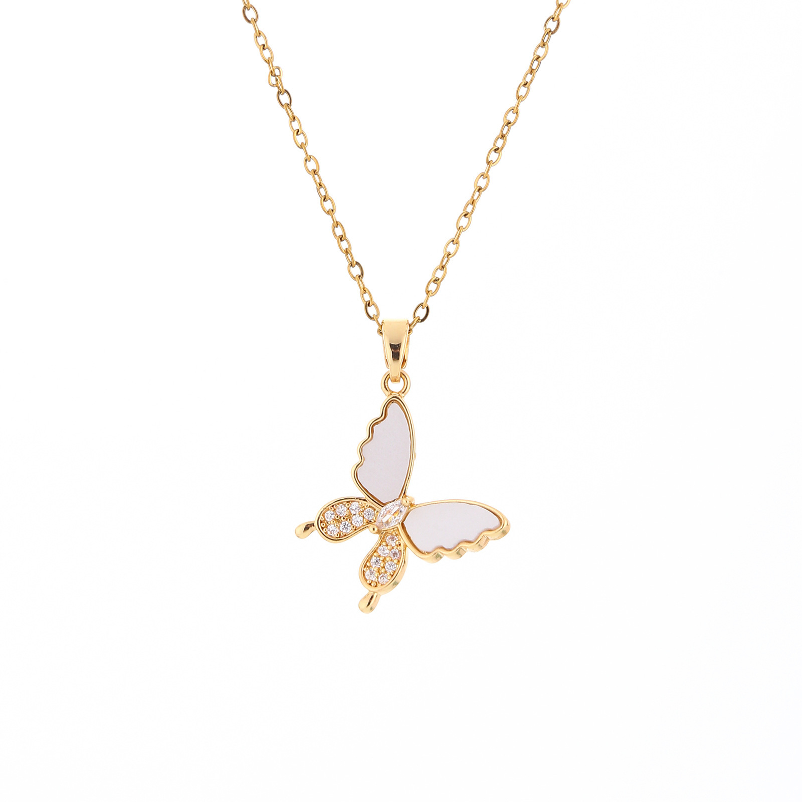 xx0179# white shell zircon butterfly necklace