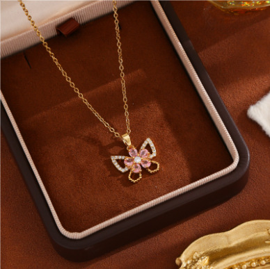xx0178# pink peach blossom butterfly necklace