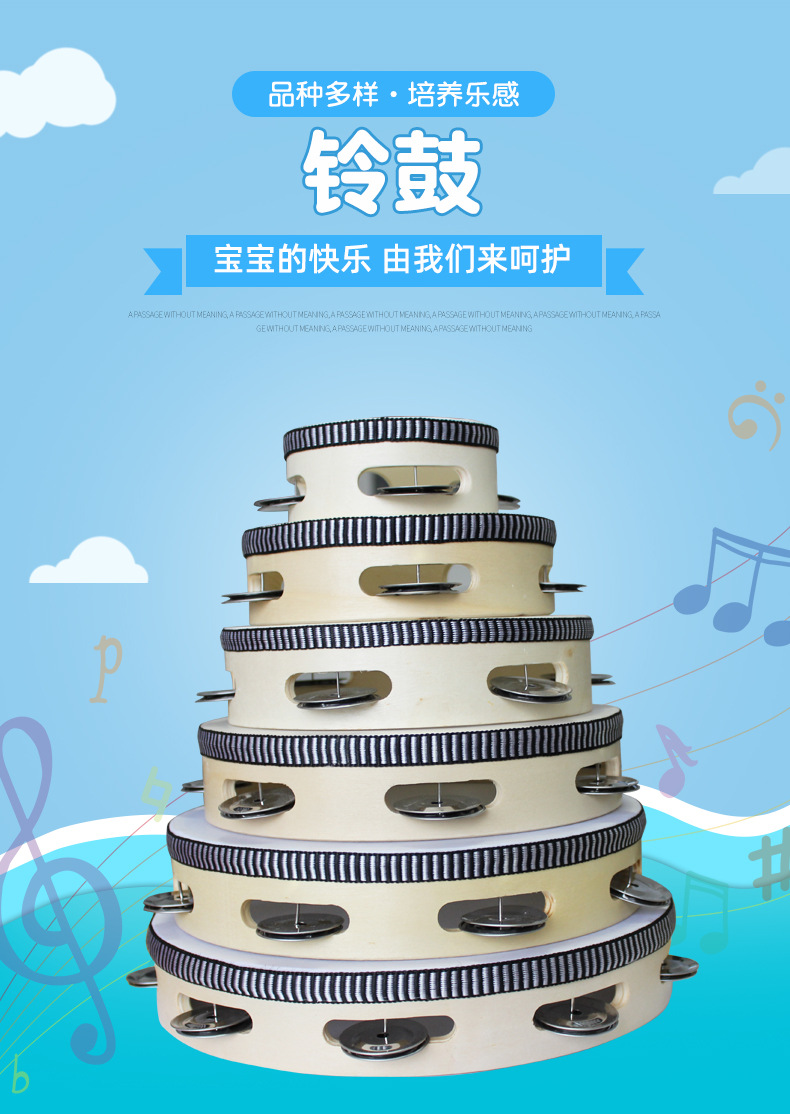 9-inch tambourine wood color