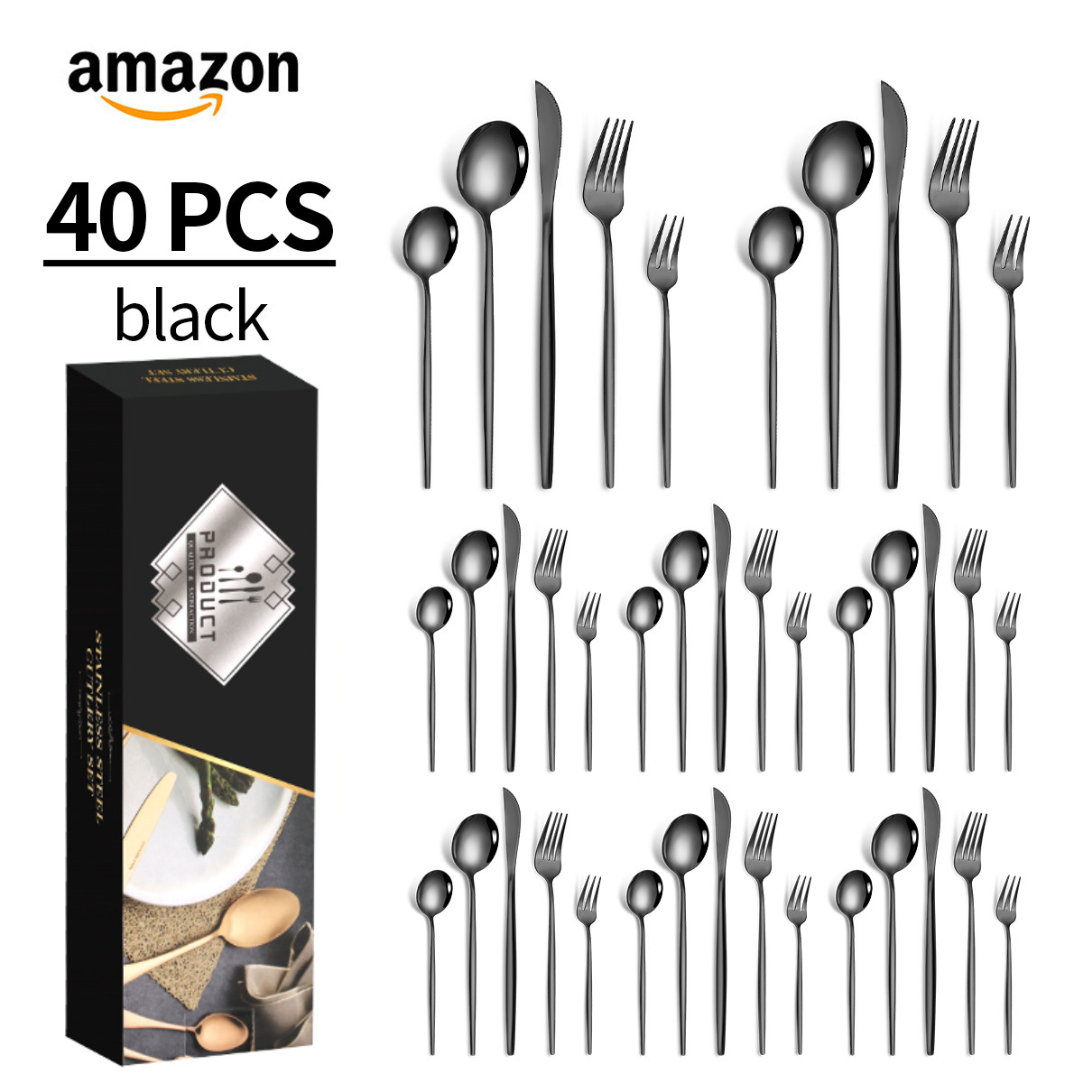 black 40-piece set/for 8 people