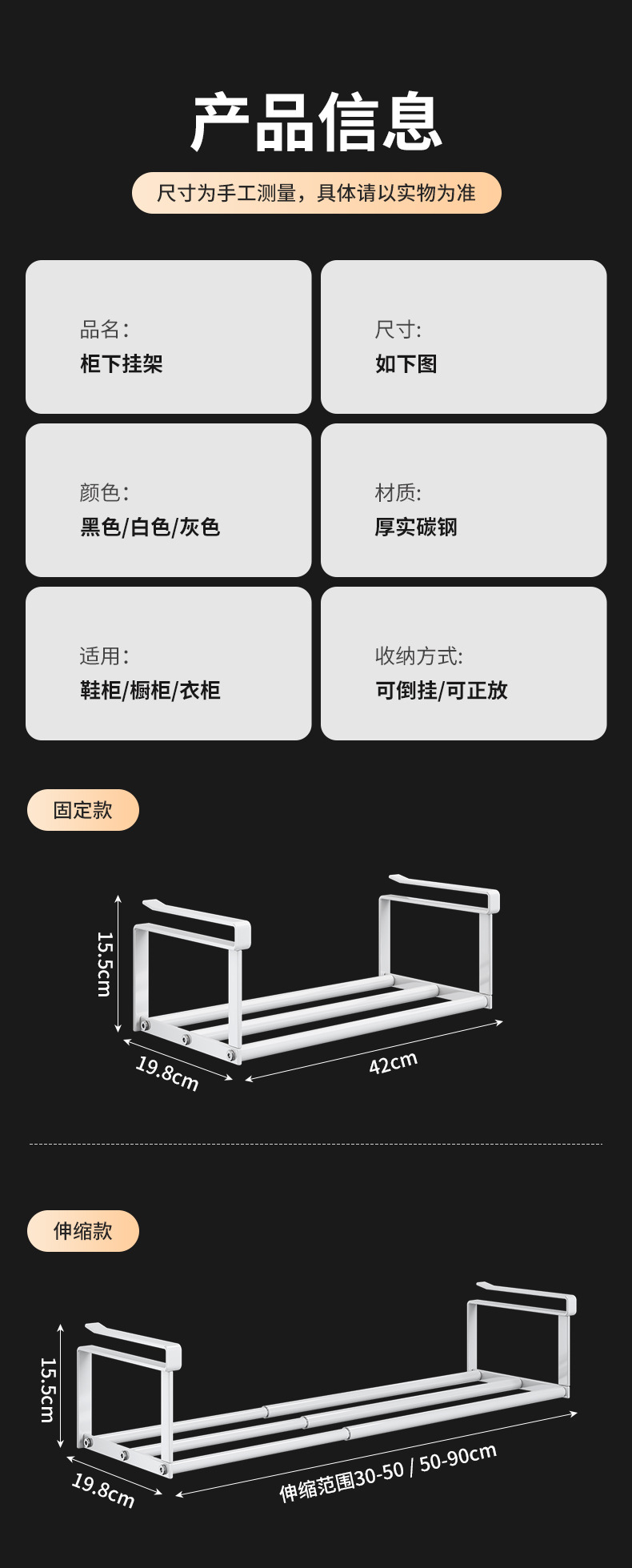 black-19.8 wide [retractable 30-50cm]]