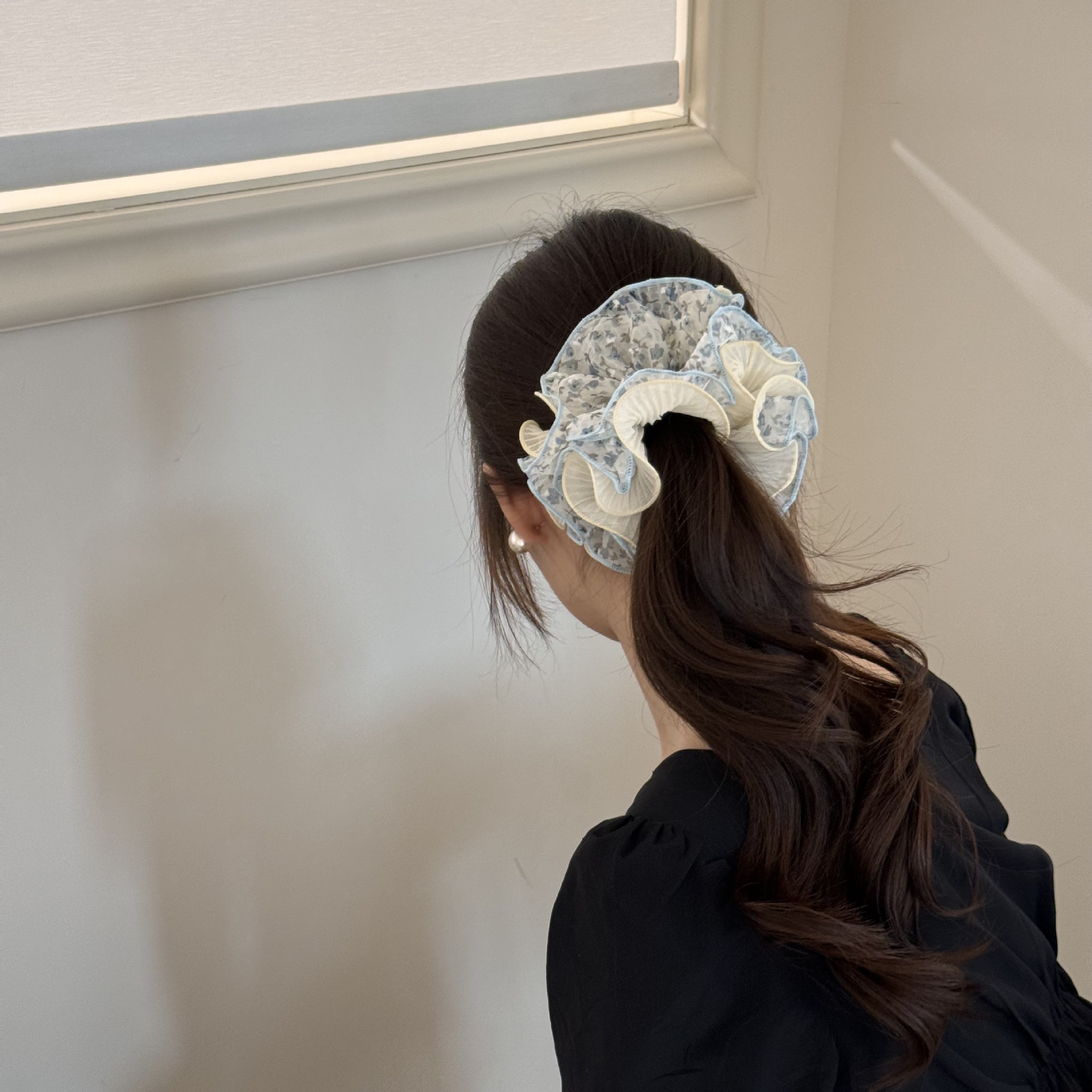 small waist-blue floral hair ring