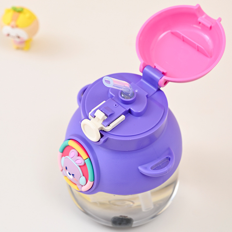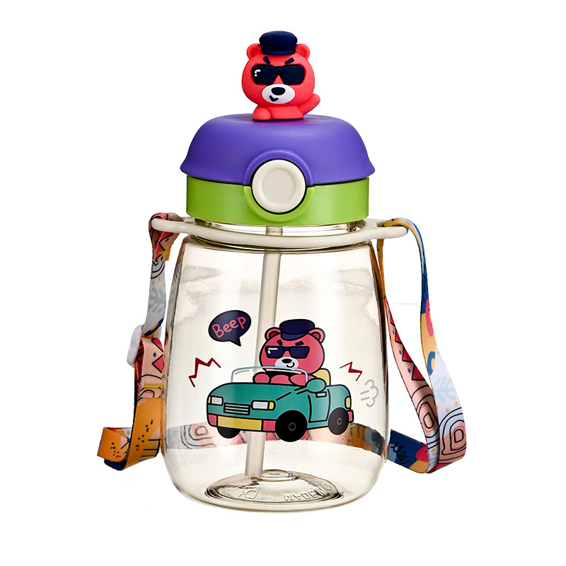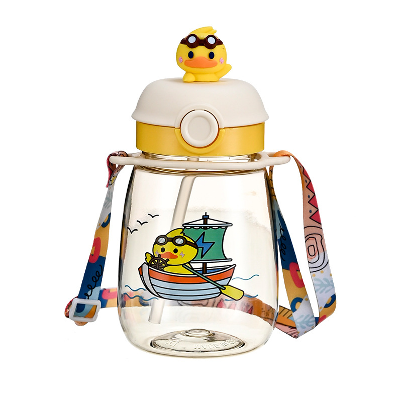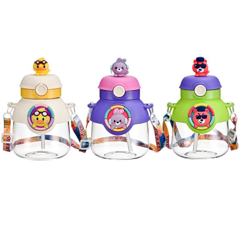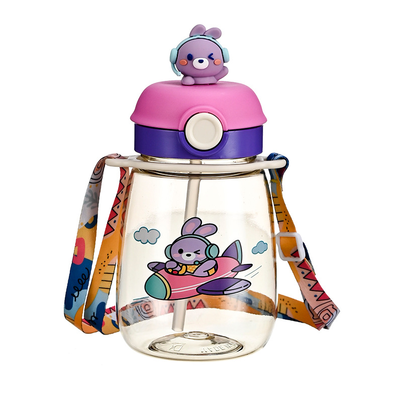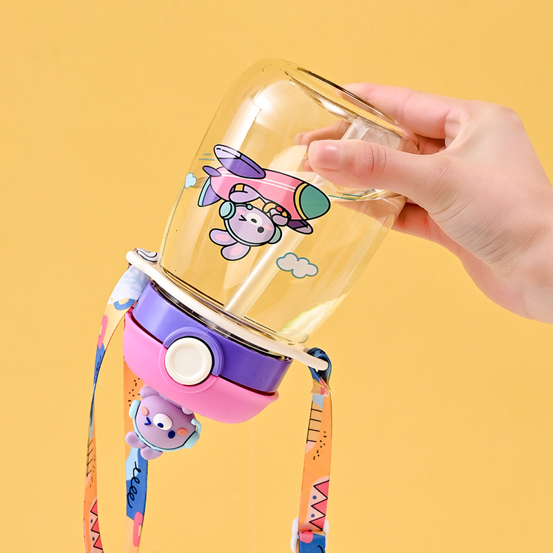new summer cartoon good-looking large capacity big belly cup children's student portable plastic strap straw water cup