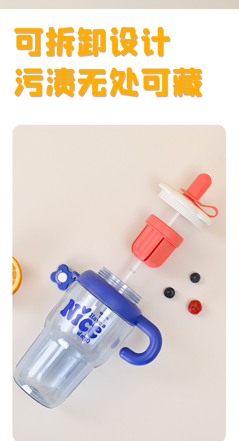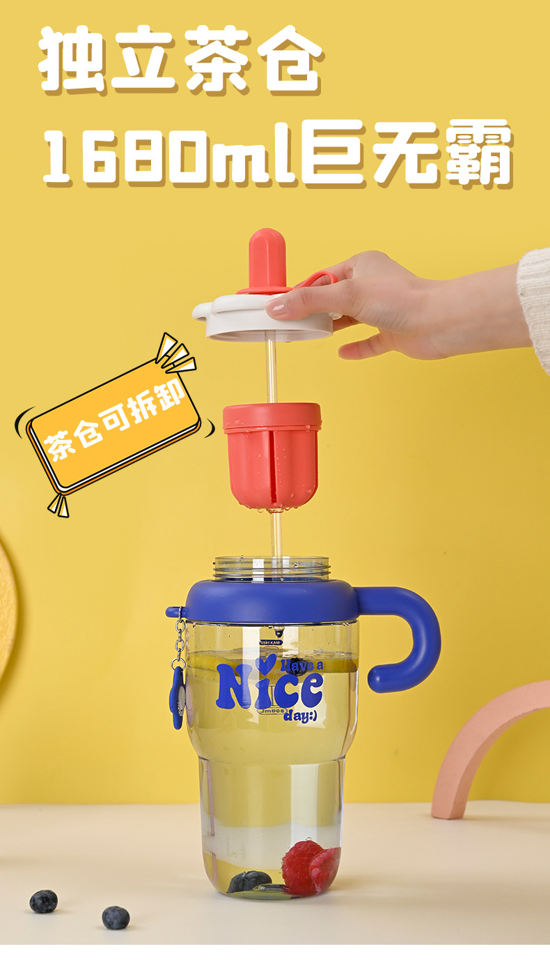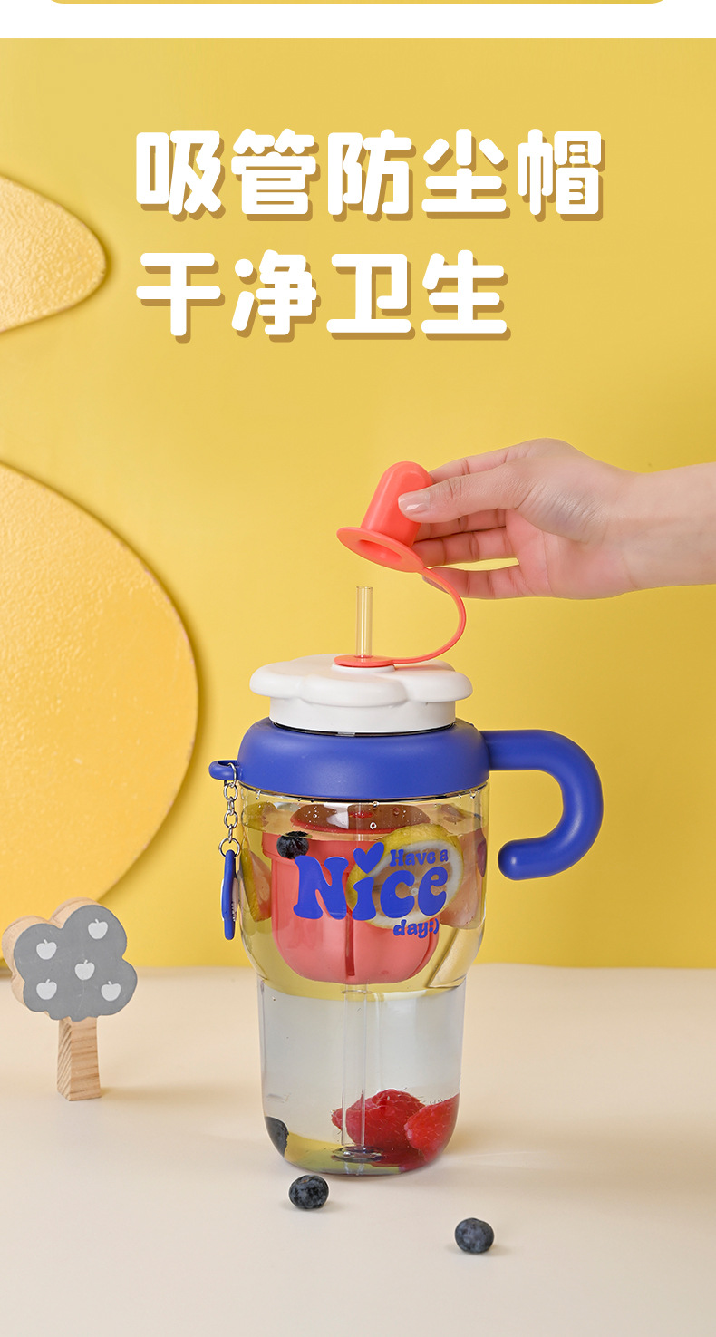 flower cup with strainer straw plastic water cup heat insulation handle good-looking simple super large capacity large ice cup new