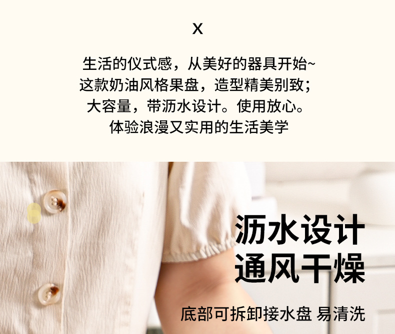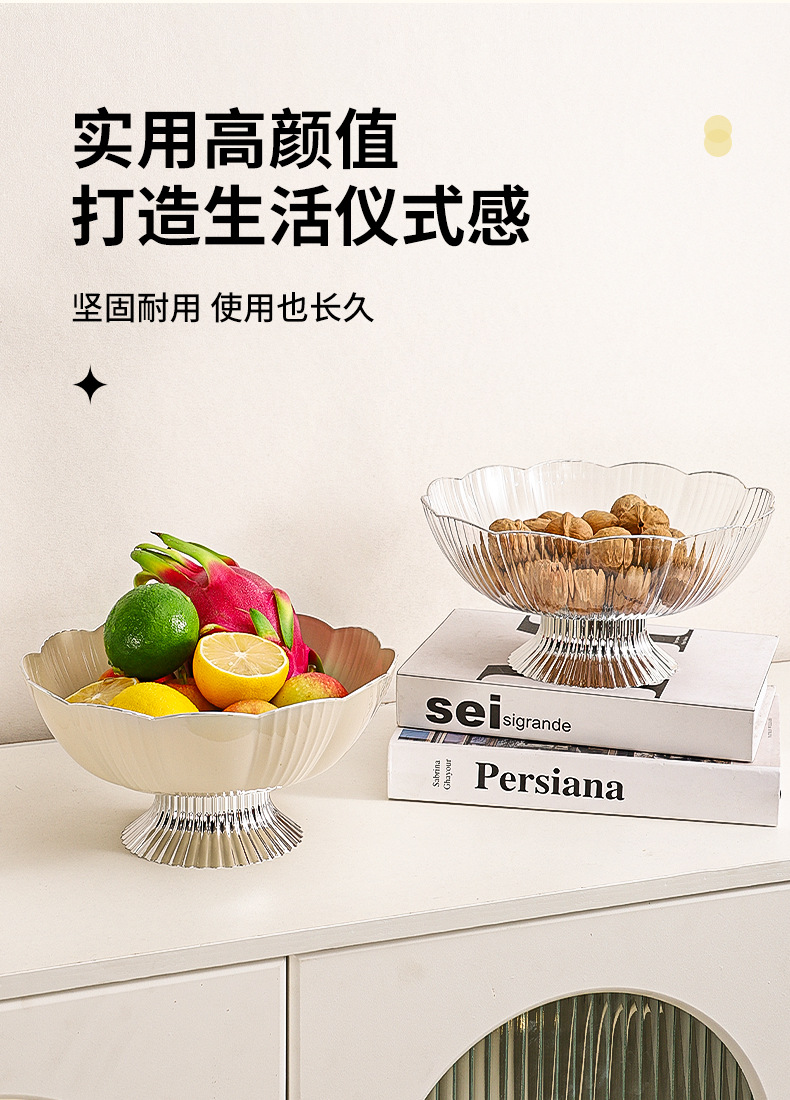 cream fruit plate (silver-plated edge) + cream base