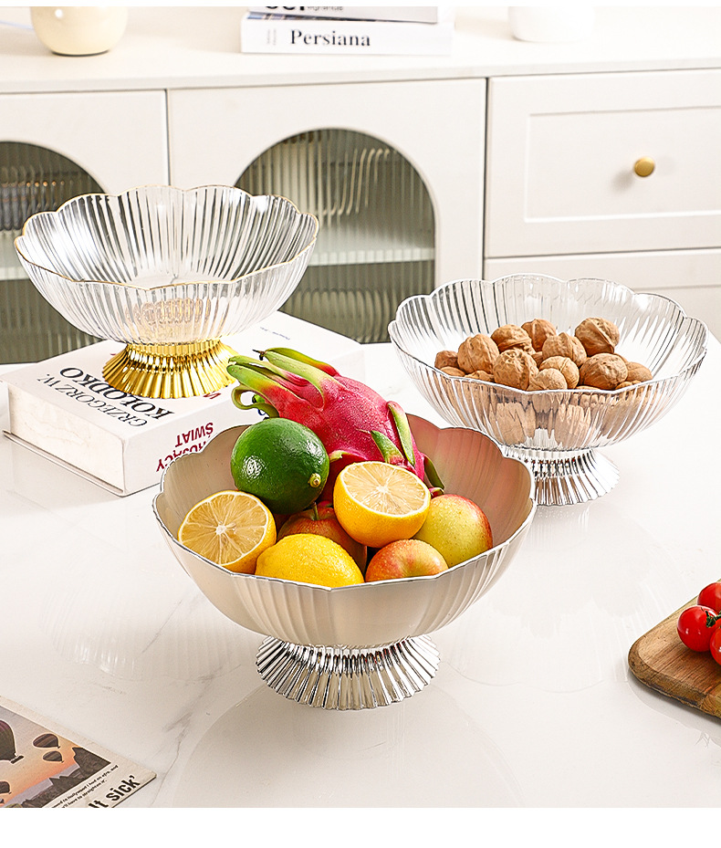 transparent fruit plate (silver-plated edge) + silver base