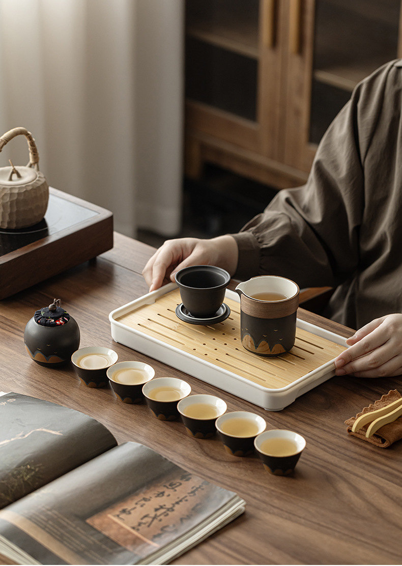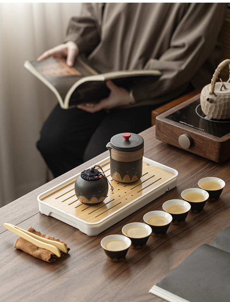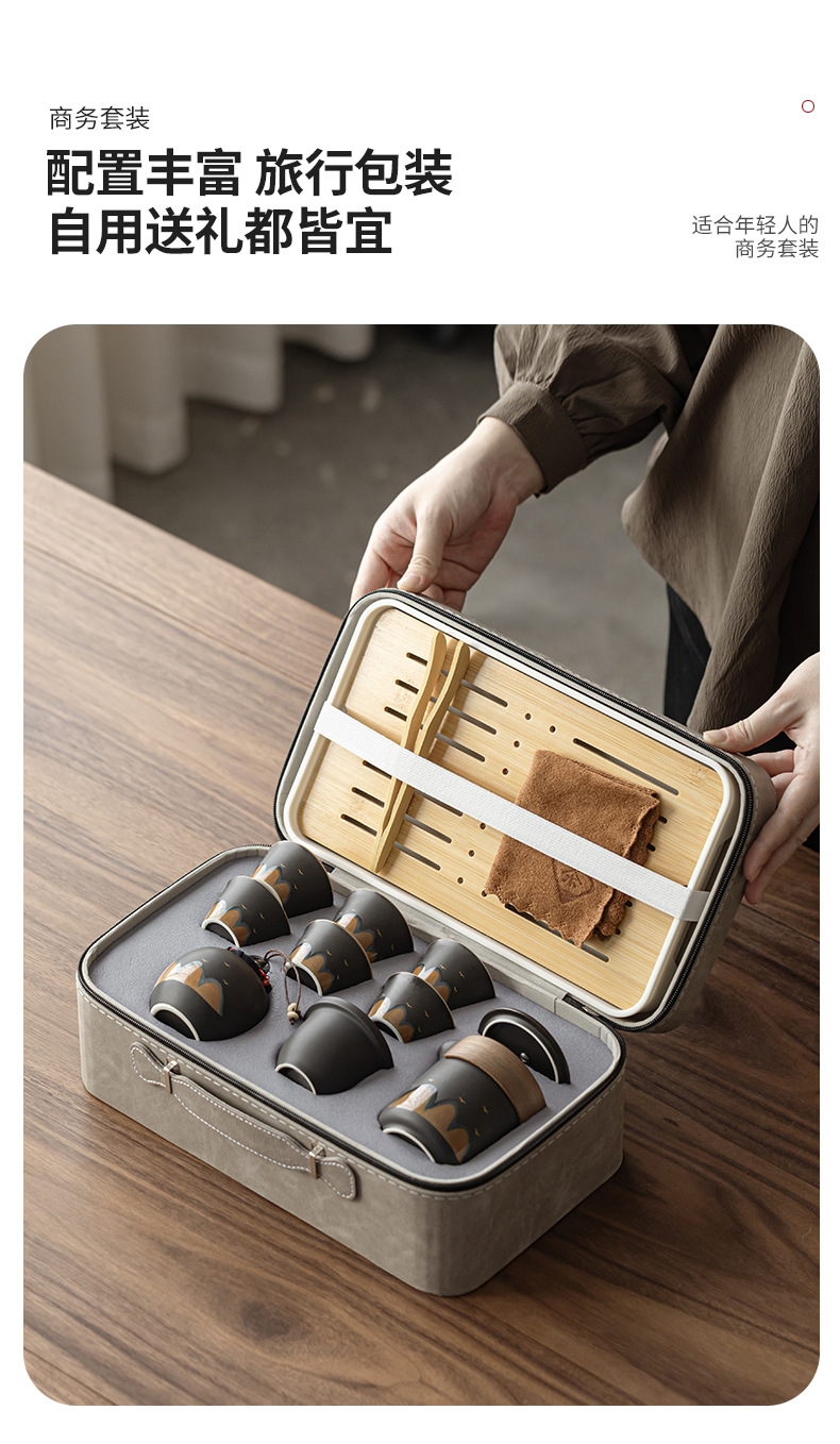 black wanli js one pot fills three cups with tea pot + portable leather box
