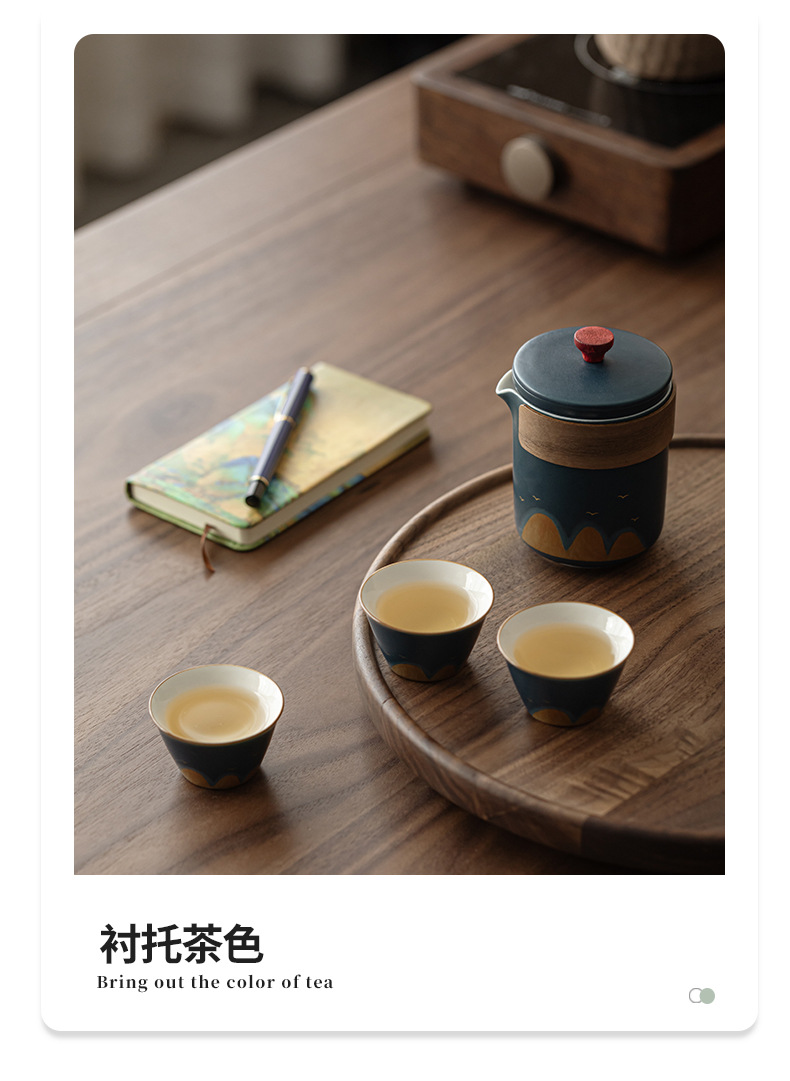 blue wanli js one pot fills three cups with tea pot + portable leather box