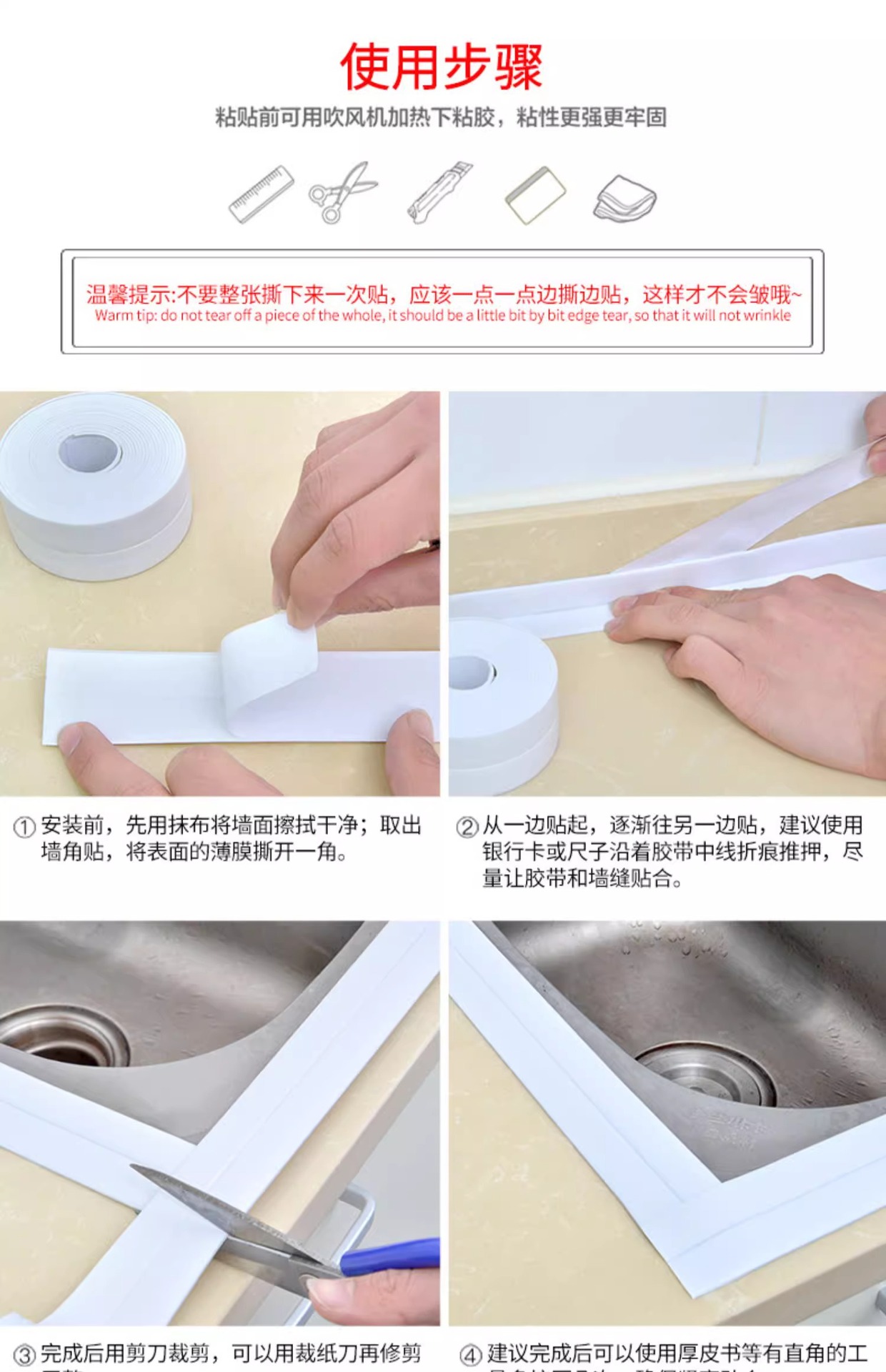 white; 3 rolls [width 3.8cm * length 3.2m] + scraper