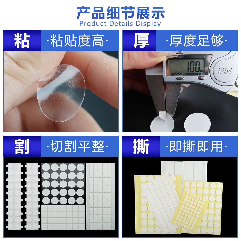 Product advantages: transparent color, easy to apply and stick, no trace of movement, does not damage the wall surface. Moreover, after separation, there will be no residual glue on the adhesive object, and it will not damage the surface of the adhesive object.
