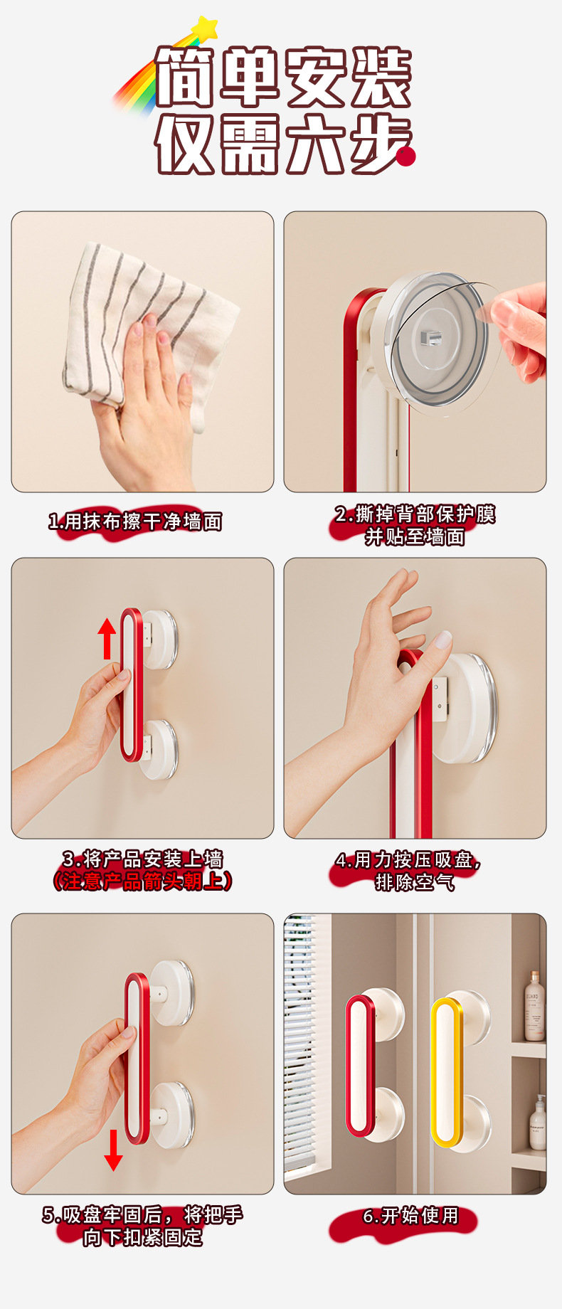 (3) Suction cups have a high requirement for the cleanliness of the wall surface, just like applying a screen protector to a mobile phone. If the surface is not flat or there is dust, the suction cups will not be firmly attached.