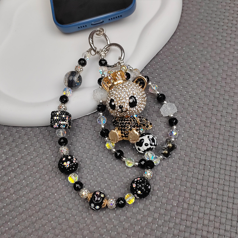 black and white bear mobile phone charm