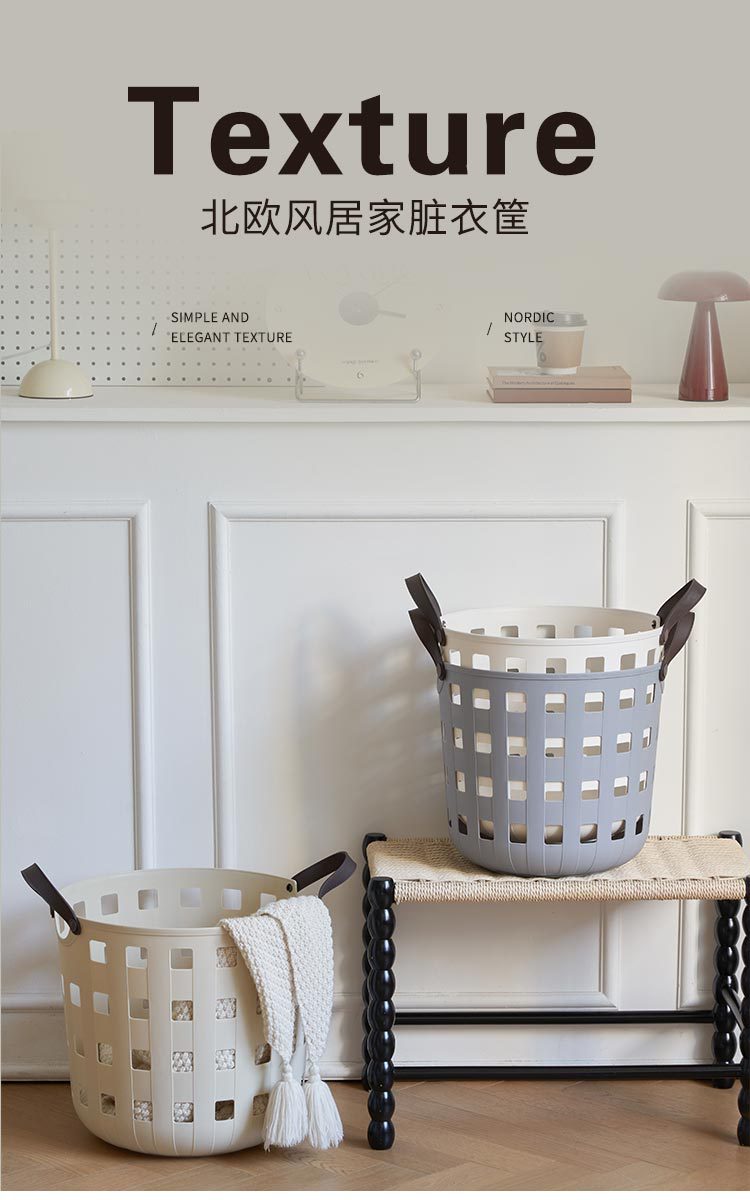 beige round plaid laundry basket (l)
