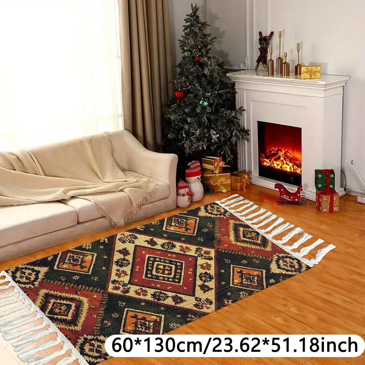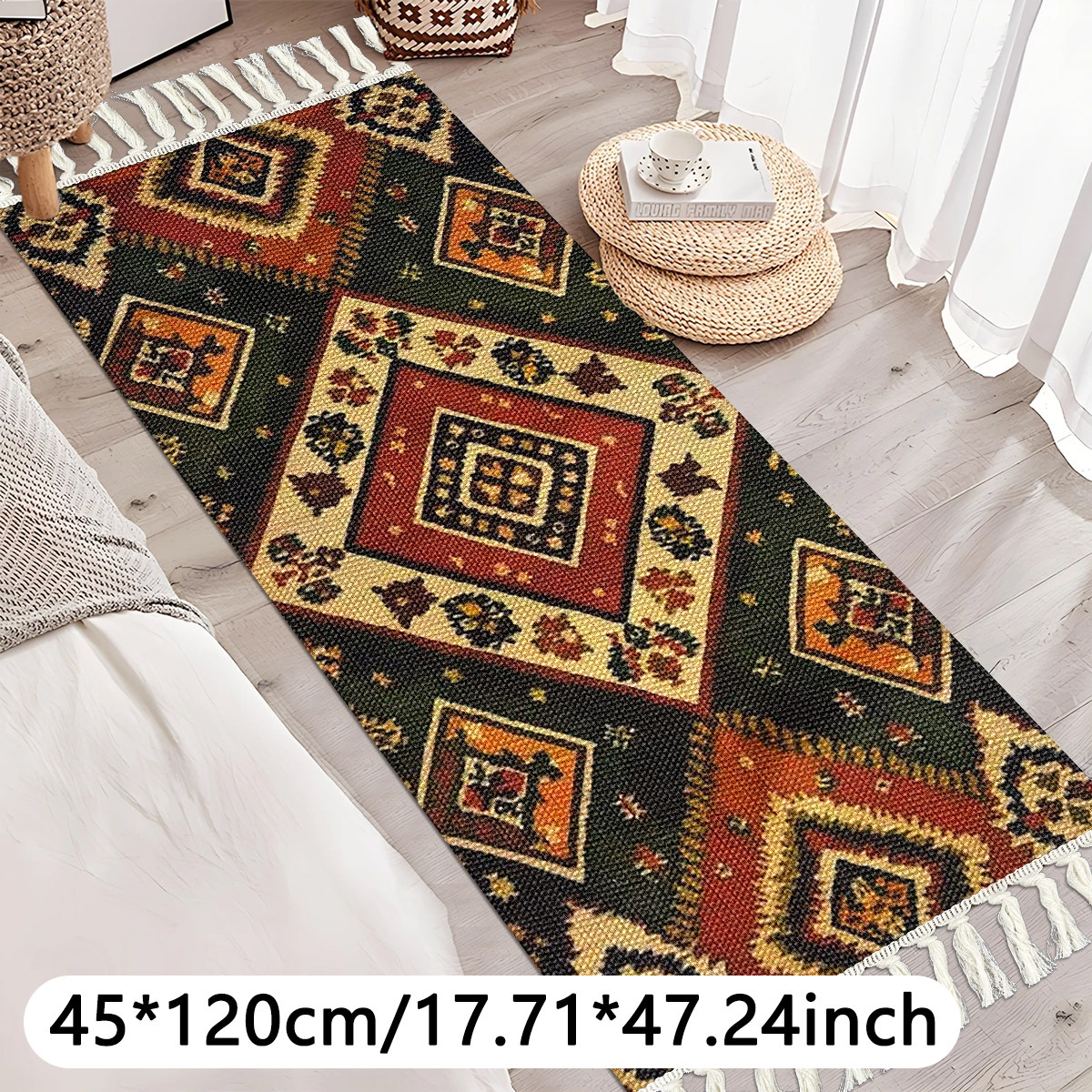 geometric weave floor mat bedside pad with tassels