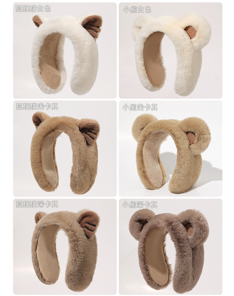 khaki thick fox ears cartoon earmuffs